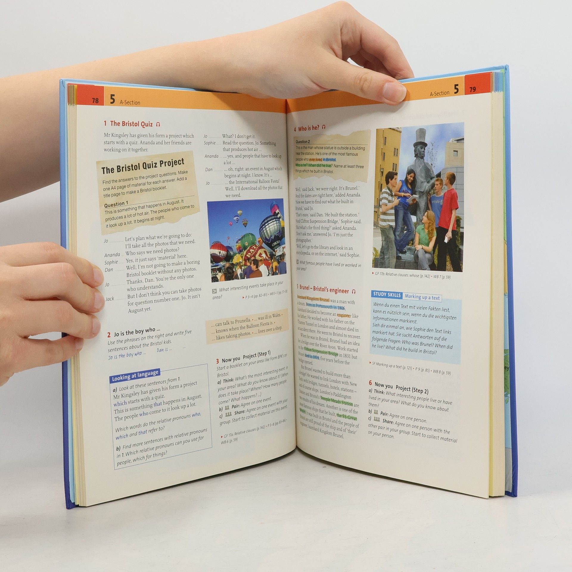 Konzeption Kompetenzen: Kommunikative Fertigkeiten Methodenkompetenz Lern- und Arbeitstechniken (study skills) Differenzierung: Zahlreiche Extra-Angebote zum binnendifferenzierten Arbeiten Vorbereitung auf die Sekundarstufe II: Literarische Texte analysieren Viewing-Abschnitte zur Arbeit mit Filmen Mediation trainieren Text File (ab Band 3): Anhang mit fiktionalen und nicht fiktionalen Texten. Ab Band 5: Dem Lead-in jeder Unit folgen drei bis vier Parts mit Text- und Practice-Teilen. Diese lassen sich linear bearbeiten. Aufgaben zum Hör-Sehverstehen sind mit Viewing-Abschnitten in jeder Unit integriert. Außerdem: Speaking Course in Band 5 und Mediation Course in Band 6. Der Nachschlageteil Skills File, Grammar File, Vocabulary, Dictionary