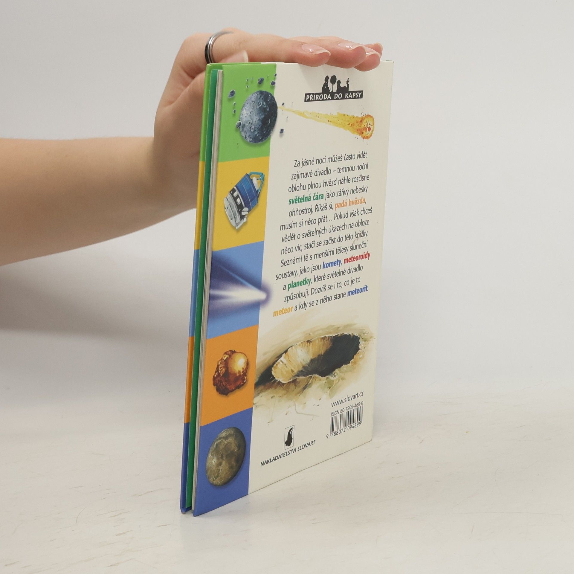 Bohatě ilustrovaná knížečka malého formátu seznámí dětského čtenáře se zajímavými menšími tělesy sluneční soustavy, jako jsou komety, meteory a planetky.