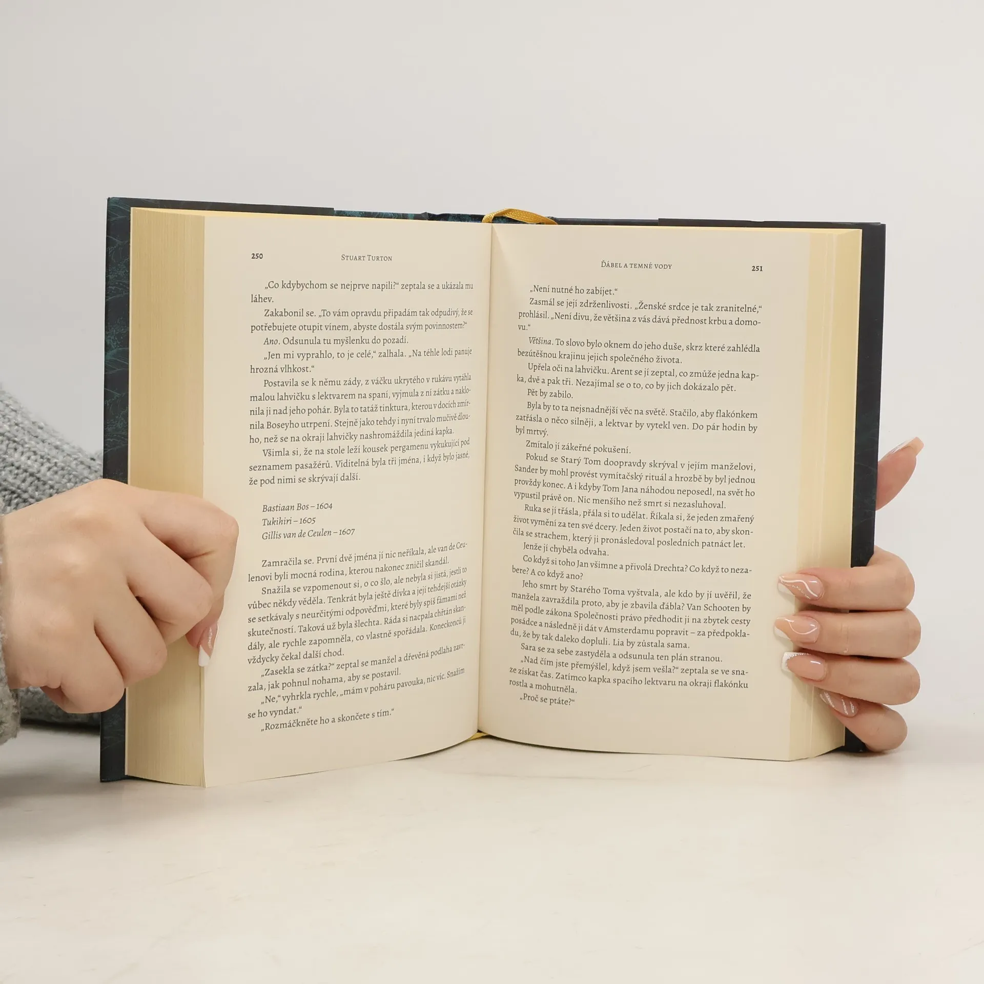 Nejlepší kniha roku 2020 na Amazonu! Mimořádný nový thriller z pera Stuarta Turtona, autora veleúspěšné mysteriózní krimi Sedm smrtí Evelyn Hardcastlové, která získala cenu Costa Best First Novel Award za nejlepší prvotinu. Vražda na širém moři. Dvojice pozoruhodných detektivů. Démon, který může a nemusí existovat. Píše se rok 1634 a Samuela Pippse, největšího detektiva na světě, vsazují do vězení na palubě lodi na cestě do Amsterdamu, kde má být popraven za zločin, který mohl a nemusel spáchat. Spolu s ním cestuje jeho osobní strážce Arent Hayes odhodlaný dokázat přítelovu nevinu. Osmiměsíční plavba z Batávie do Amsterdamu je však od samého začátku poznamenána nevyzpytatelnými ďábelskými událostmi. Po lodi se potlouká dvakrát zemřelý malomocný, na plachtách se objevují podivné symboly, někdo zmasakruje všechen dobytek chovaný na palubě. Vinen může být úplně každý. Dokonce i démon. Pipps sedí zavřený v zatuchlé cele a Arent je tudíž jediný, kdo dokáže vyřešit záhadu dotýkající se každého pasažéra na lodi. Jde o tajemství sahající hluboko do minulosti, které hrozí poslat loď ke dnu a s ní i všechny na palubě. Ďábel a temné vody potěší všechny příznivce Stephena Kinga. Jde o mrazivou, neotřelou variaci na dvojici detektivů známých z příběhů Sherlocka Holmese, zasazenou pod hlavičku žánrů jako je nadpřirozený horor nebo okultní detektivka, která se navíc odehrává na širém moři.