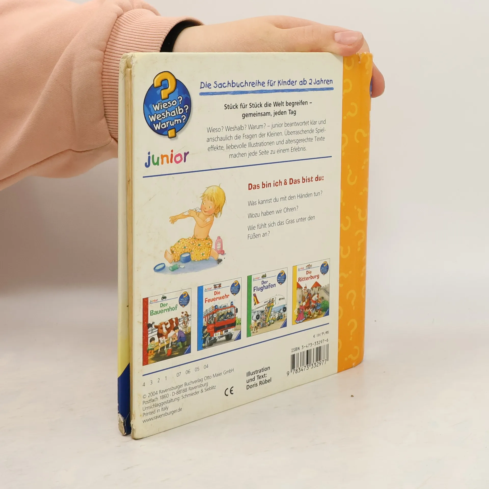 Was kann ich alles mit meinen Händen tun? Tasten, streicheln, kratzen und noch viel mehr. Mit den Beinen kann ich laufen und hüpfen und mit den Ohren hören. Und du? - Ein erstes Körperbuch für ganz Kleine, mit dem sie ihren Körper und ihre Gefühle kennen lernen können. Wieso? Weshalb? Warum? junior Die Sachbuchreihe für Kinder von 2-4 Jahren Jeden Tag entdecken Kinder etwas Neues – und haben viele Fragen. Wann kommt die Feuerwehr? Was machen die Tiere im Winter? Warum muss ich Zähne putzen? Die beliebte Sachbuchreihe Wieso? Weshalb? Warum? junior beantwortet die Fragen der Kinder auf Augenhöhe. Sie beleuchtet unterschiedlichste Themen aus ihrer Alltags- und Interessenswelt altersgerecht und mit viel Liebe zum Detail. Die Reihe ist speziell auf kleine Hände und die Bedürfnisse der Kleinsten angepasst. Klare und liebevolle Bilder, kurze Sachtexte sowie handliche Klappen, die Bewegungen veranschaulichen und überraschende und lustige Einblicke gewähren, ermöglichen Kindern, sich ihre Themen selbst zu erschließen. Der Spaß am eigenhändigen Entdecken, die liebevolle Umsetzung und die hochwertige Ausstattung garantieren langanhaltende Freude an jedem Buch.