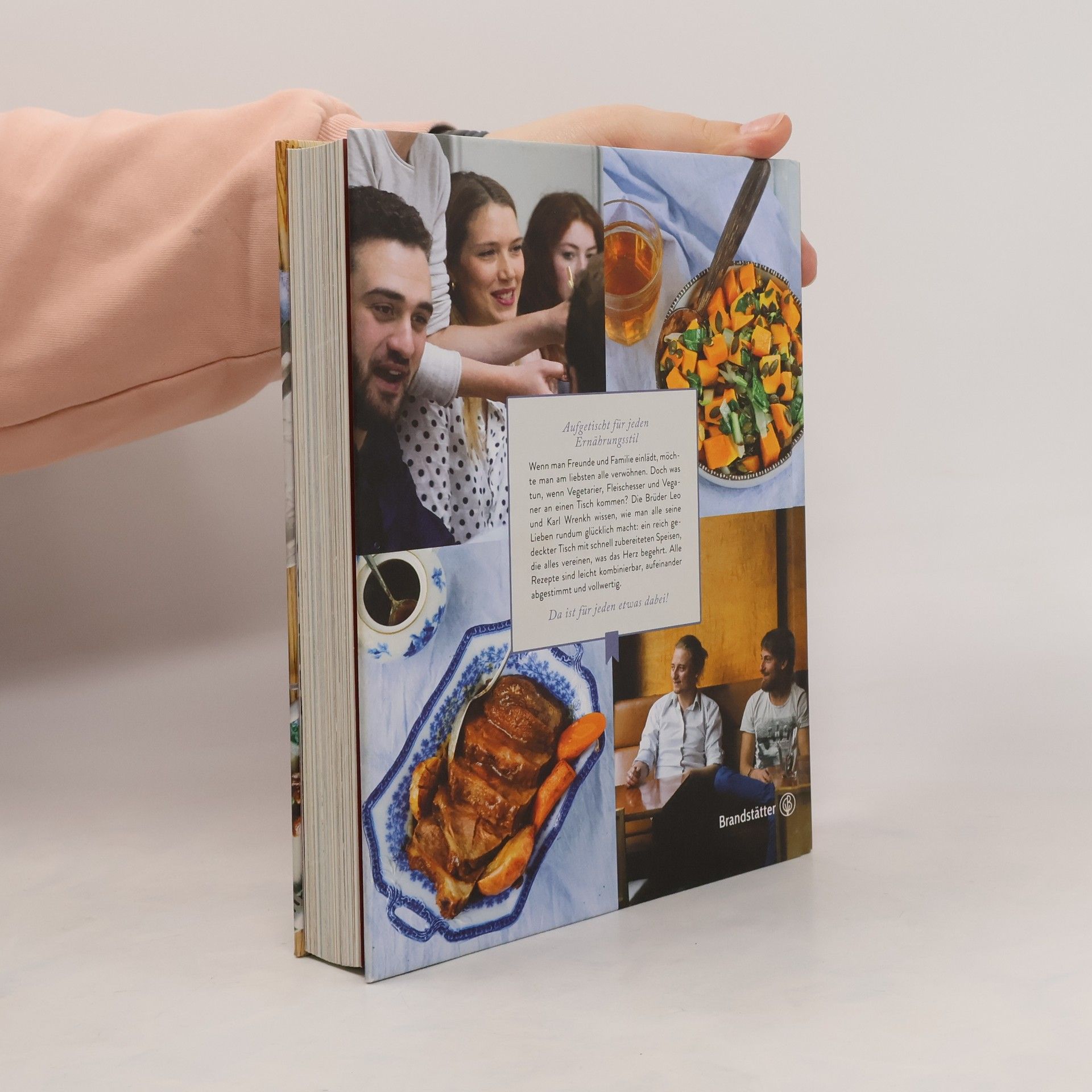 Wenn man Freunde und Familie einlädt, möchte man am liebsten alle verwöhnen. Doch was tun, wenn Vegetarier, Fleischesser und Veganer an einen Tisch kommen? Die Brüder Leo und Karl Wrenkh wissen, wie man alle seine Lieben rundum glücklich macht: ein reich gedeckter Tisch mit schnell zubereiteten Speisen, die alles vereinen, was das Herz begehrt. Von geschmortem Gemüse über einen knusprigen Braten bis hin zu feiner Pasta und knackigem Salat – alles leicht kombinierbar, aufeinander abgestimmt und vollwertig (keine Beilagen). Da ist für jeden etwas dabei! Und das Beste: Die Rezept-Kombinationen machen es möglich, dass der/die Gastgeber/in gemeinsam mit den Gästen essen und genießen kann. Kurz: Hier versammeln sich wirklich ALLE an einem Tisch. Schnelle Rezepte aus vielen Ecken der Welt für gemütliche Abende, Wochenenden, Feiertage und Feste, die man mit Leidenschaft für Freunde und Familie zubereitet. Laktoseintoleranz oder Glutenunverträglichkeit? Kein Problem! Die Brüder Wrenkh haben für jeden Geschmack und jede Vorliebe die passende Rezeptkombination. Gemeinsam essen und genießen war noch nie so vergnüglich!