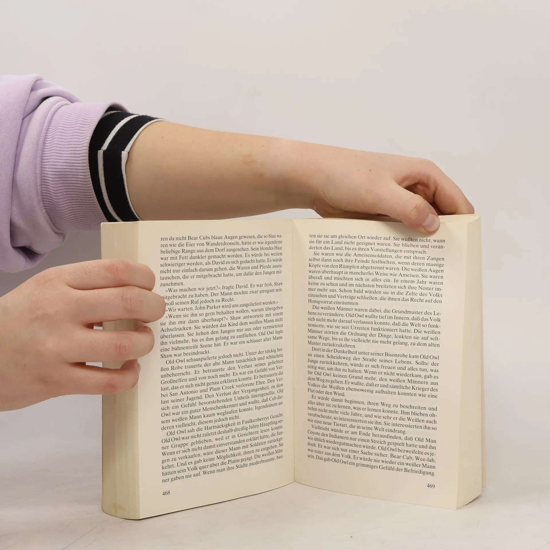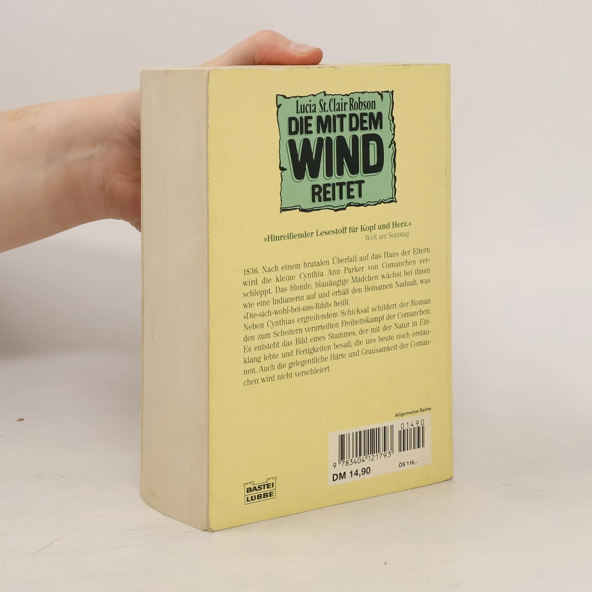 1836. Nach einem brutalen Überfall auf das Haus der Eltern wird die kleine Cynthia Ann Parker von Comanchen verschleppt. Das blonde, blauäugige Mädchen wächst bei ihnen wie eine Indianerin auf und erhält den Beinamen Naduah, was »Die-sich-wohl-bei-uns-fühlt« heißt. Neben Cynthias ergreifendem Schicksal schildert der Roman den zum Scheitern verurteilten Freiheitskampf der Comanchen. Es entsteht das Bild eines Stammes, der mit der Natur in Einklang lebte und Fertigkeiten besaß, die uns heute noch erstaunen. Auch die gelegentliche Härte und Grausamkeit der Comanchen wird nicht verschleiert.