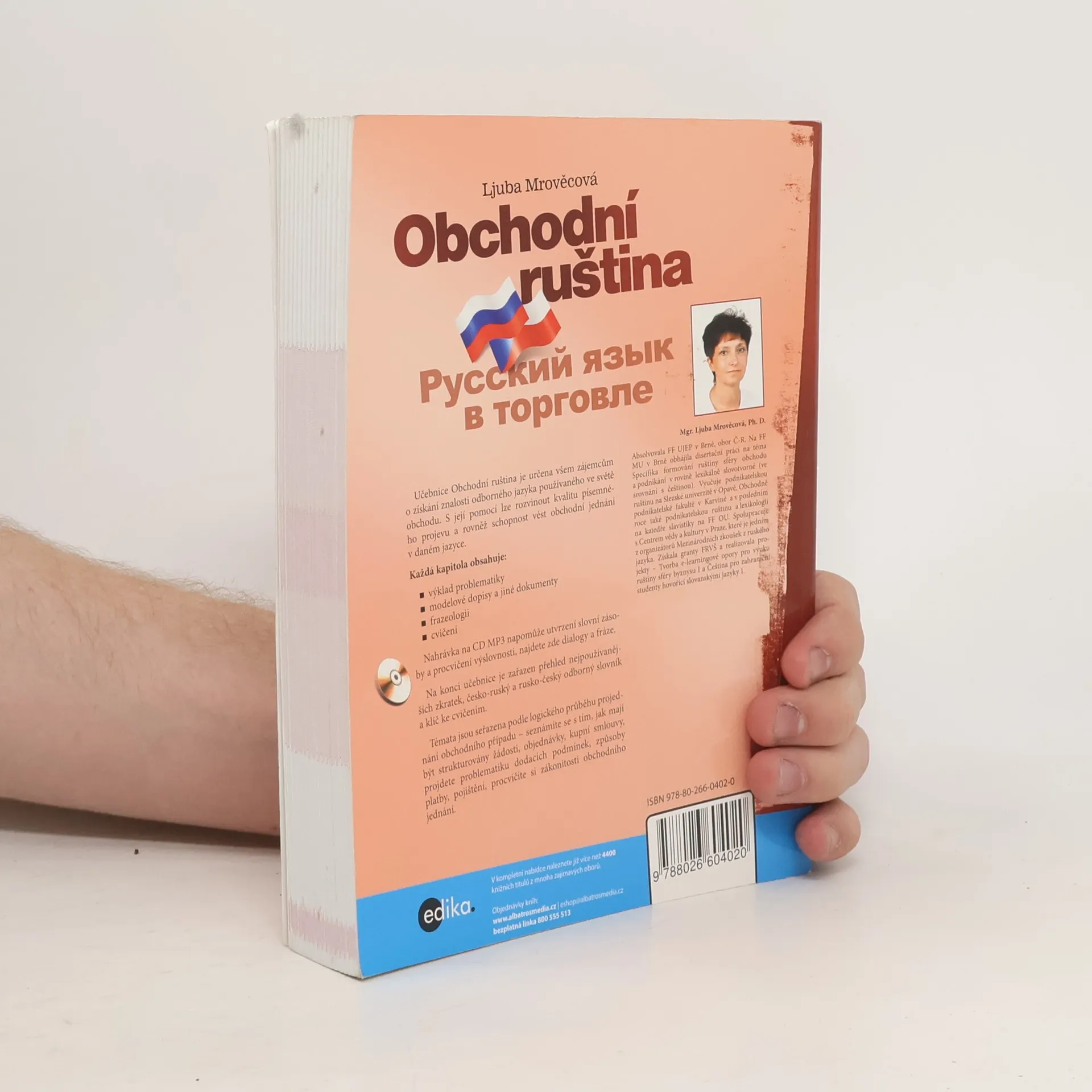 Učebnice odborného jazyka z oblasti obchodu. Příručka je tematicky rozdělena do 13 kapitol. Obsahuje slovní zásobu a vzory pro procvičení písemného projevu. Podstatná část textů, stručné poznámky ke gramatice a různá cvičení rozšiřují znalost ústní obchodní komunikace. Na konci knihy najdete stručné situační dialogy, slovníček a klíč ke cvičením. Přehledná a praktická učebnice pro studenty středních i vysokých škol, určená všem zájemcům o odbornou ruštinu.