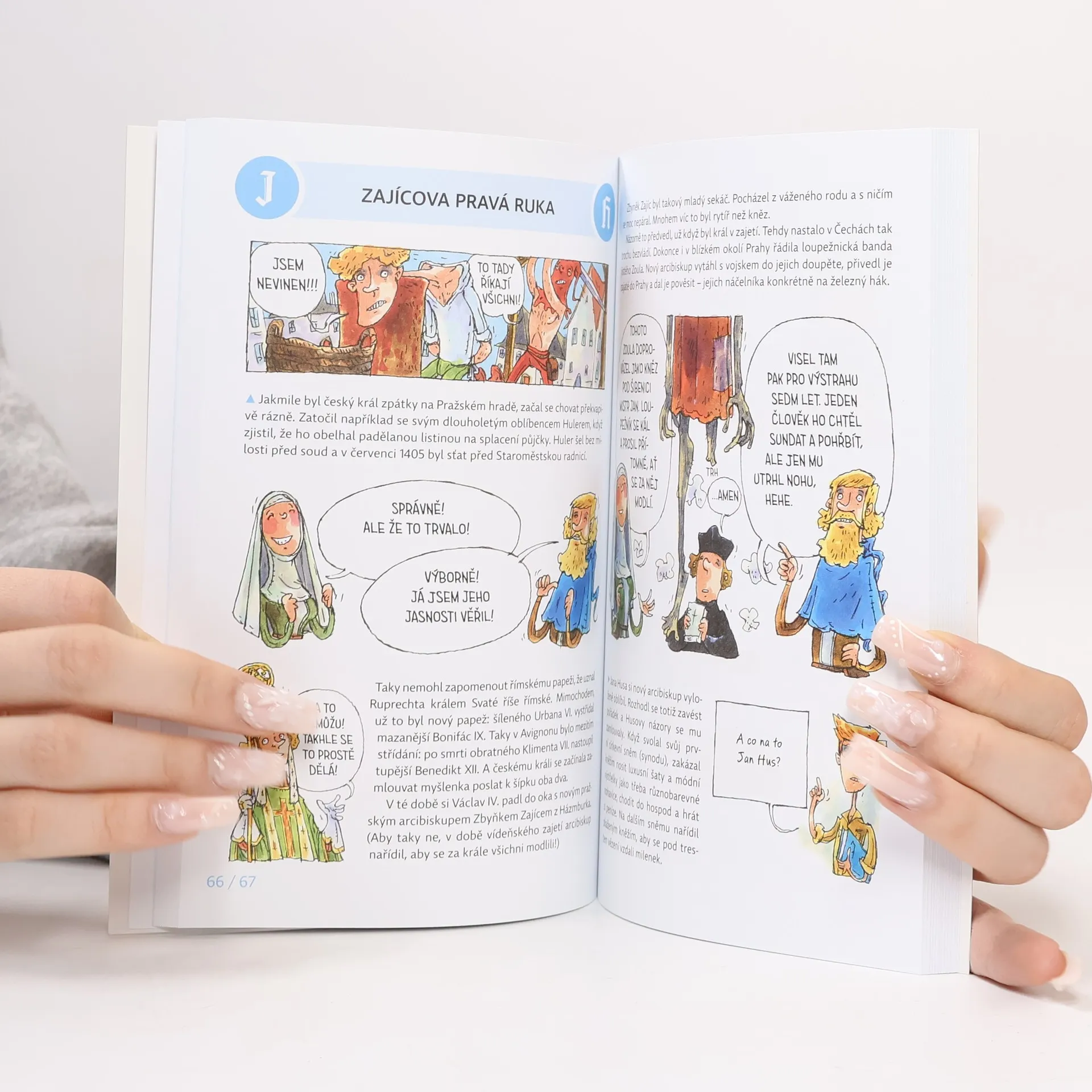 První díl zamýšlené zábavné série popisující naše slavné hrdiny tak, jak je neznáte. Čeká vás plno pikantních detailů, zajímavostí, vtipných komentářů a komiksových ilustrací. Průvodci vám budou krejčí Ondřej a panna Anežka, historické postavy, které Jana Husa zažily, a pak několik „laskavých čtenářů“, kteří občas nevěří svým očím, co že se to v Čechách tehdy dělo. A tak kladou otázky… O Janu Husovi jistě každý z vás slyšel. Ale možná nevíte, že: – nebyl hubený a vlasatý, ale plnoštíhlý a s pleškou na šošolce – rád žertoval a tropil si šprýmy z ostatních farářů – na kněze se původně dal proto, aby měl dobré jídlo a bydlení