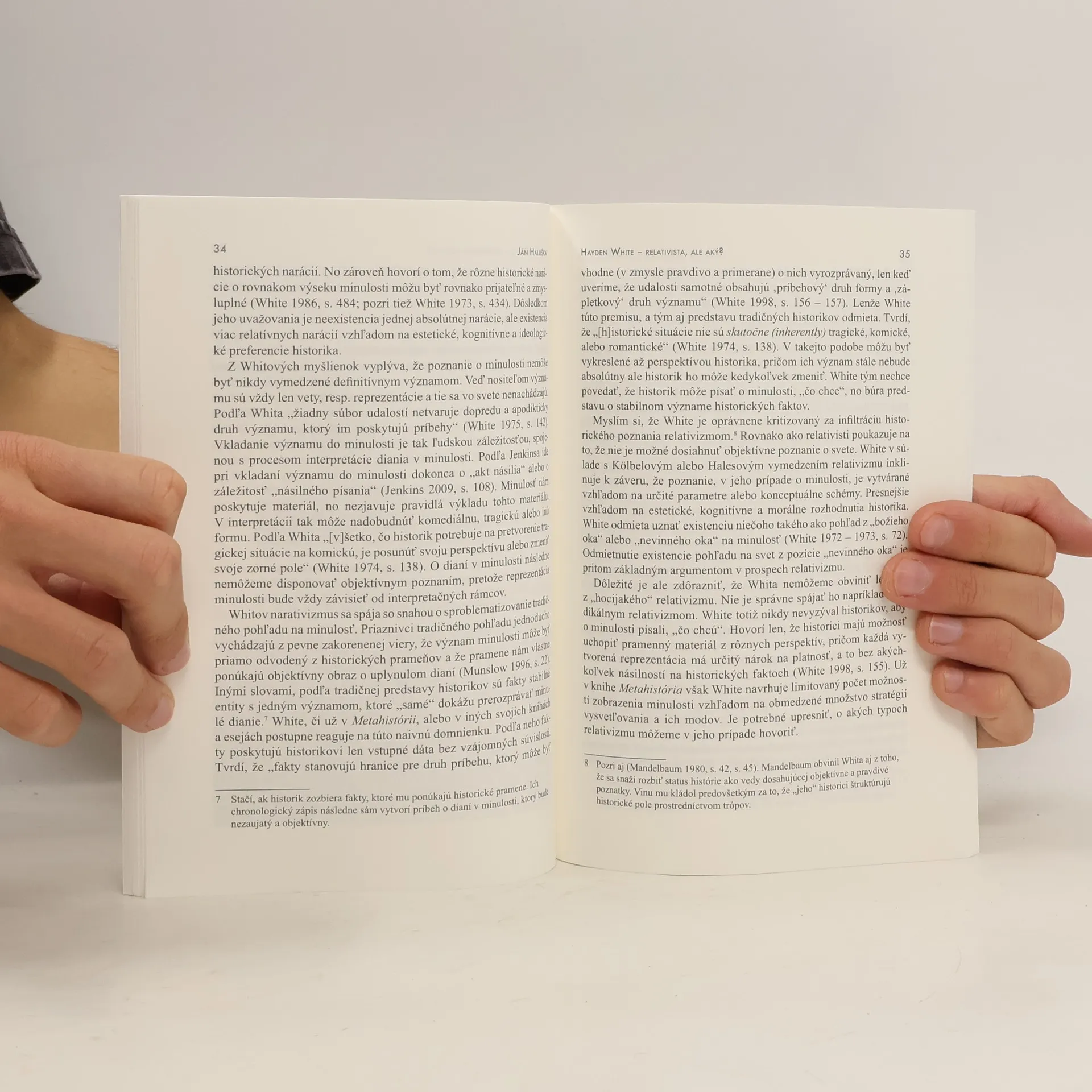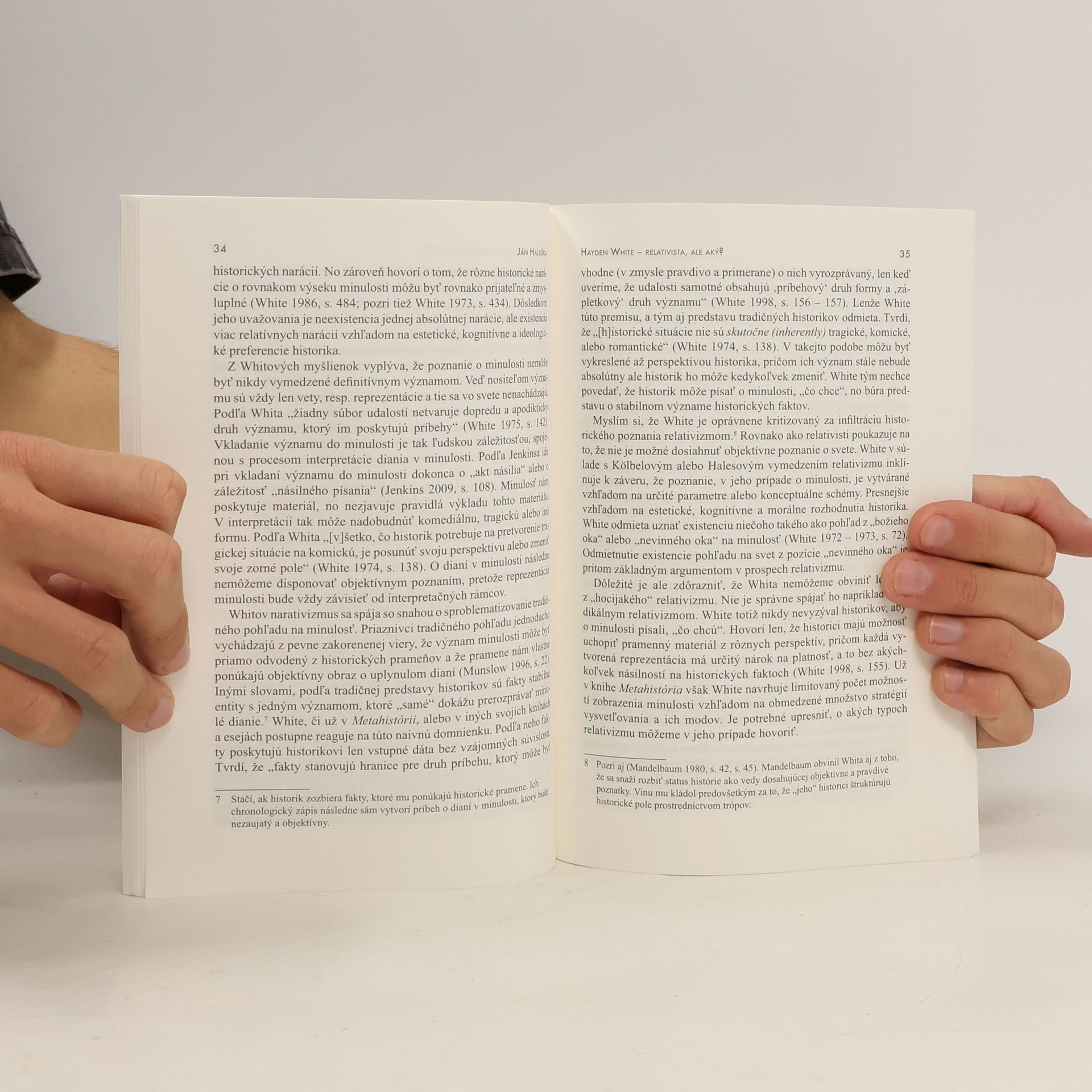 Hoci by sa mohlo zdať, že Whitova pozícia musí byť už dostatočne známa a preskúmaná – veď zrejme najväčší ohlas mali jeho diela zo 70. rokov 20. storočia Metahistória (1973) a Tropiky diskurzu (1978) –, v skutočnosti sú jeho názory vo svete dodnes predmetom neutíchajúceho záujmu. Predkladaný zborník nadväzuje na snahu ponúknuť výklad vybraných aspektov Whitovho bohatého diela. Autori jednotlivých článkov (J. Šuch, J. Haluška, J. Kováčová, J. Dvorský, I. Jančovič, E. Zeleňák) pritom poukazujú na rôzne tváre Haydena Whita. Približujú jeho záujem o literárne postupy pri tvorbe historických textov, jeho fascináciu pluralitou historických prác i dôraz na slobodu človeka a morálny základ histórie.