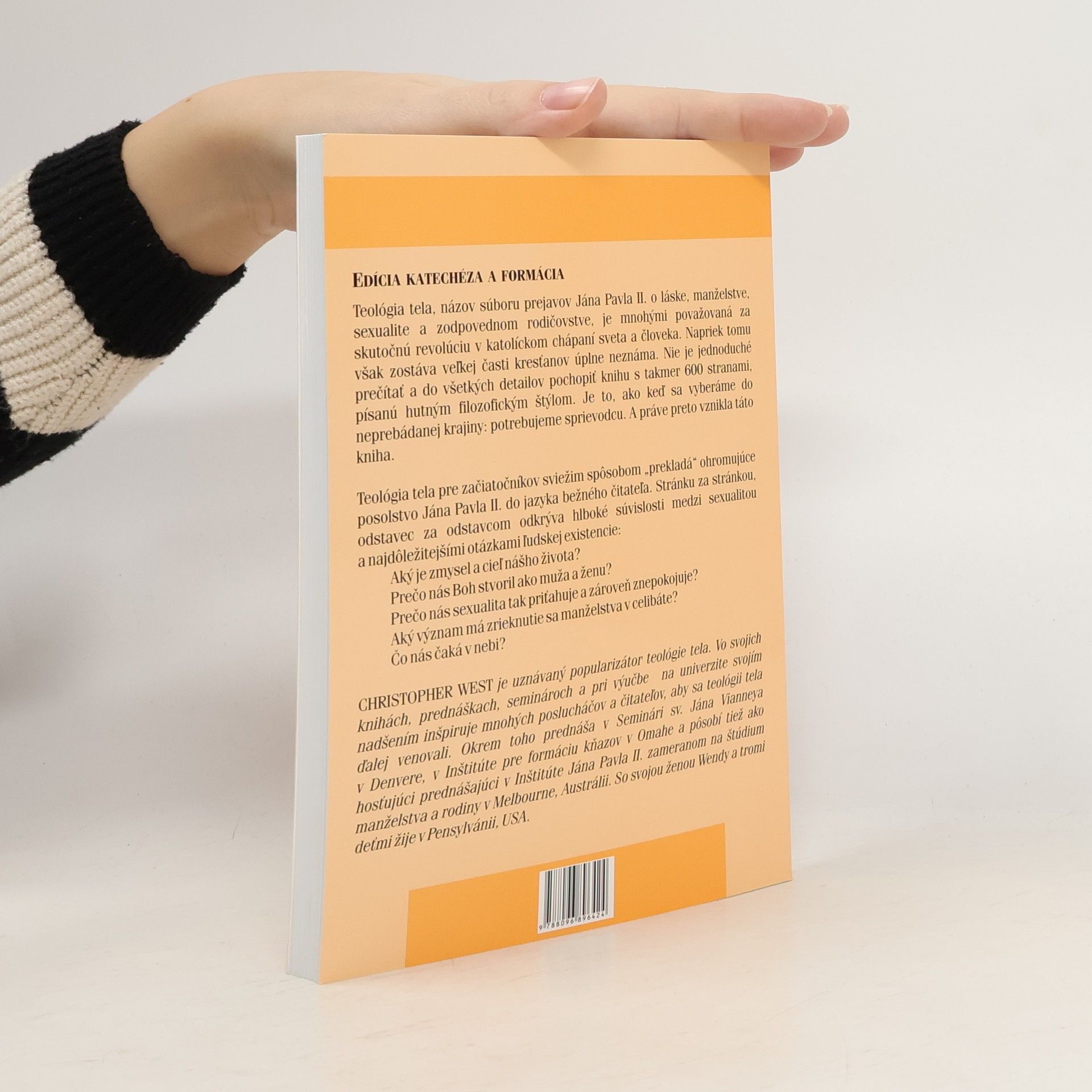 Teológia tela, názov súboru prejavov Jána Pavla II. o láske, manželstve, sexualite a zodpovednom rodičovstve, je mnohými považovaná za skutočnú revolúciu v katolíckom chápaní sveta a človeka. Napriek tomu zostáva veľkej časti kresťanom úplne neznáma. Nie je je jednoduché prečítať a do všetkých detailov pochopiť knihu s takmer 600 stranami, písanú hutným filozofickým štýlom. Je to ako keď sa vyberáme do neprebádanej krajiny: potrebujeme sprievodcu. A práve preto vznikla táto kniha. Teológia tela pre začiatočníkov sviežim spôsobom "prekladá" ohromujúce posolstvo Jána Pavla II. do jazyka bežného čitateľa. Stránku za stránkou, odstavec za odstavcom odkrýva hlboké súvislosti medzi sexualitou a najdôležitejšími otázkami ľudskej existencie: Aký je zmysel a cieľ nášho života? Prečo nás Boh stvoril ako muža a ženu? Prečo nás sexualita tak priťahuje a zároveň znepokojuje? Aký význam má zrieknutie sa manželstva v celibáte?