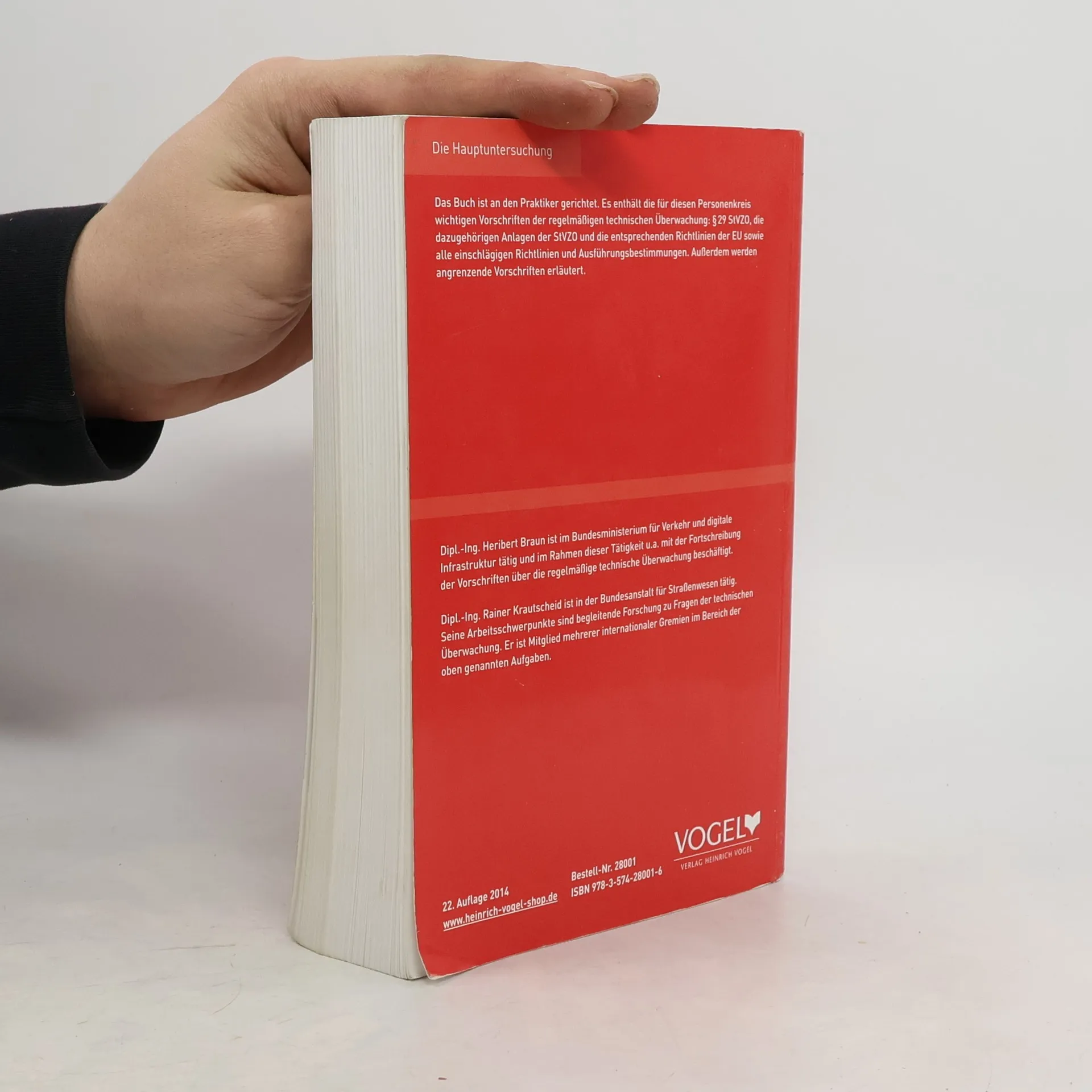 Seit vielen Jahren das Standardwerk für die regelmäßige technische Überwachung. Das Buch bietet eine einmalige und umfassende Sammlung aller Vorschriften für die Durchführung der techn. Überwachung. Dabei keine bloße Aneinanderreihung, sondern eine systematische Gliederung sowie Auswahl und Zusammenstellung nach Themen. Der Prüfer findet alles an einer Stelle, kein langes Suchen. Aus dem Inhalt: ¦Alle wichtigen Richtlinien und Verordnungen zum Thema technische Überwachung (§29 StVZO, Durchführung und Nachweise der HU und SP) ¦Anerkennung von Überwachungsorganisationen und SP-Werkstätten sowie von Untersuchungsstellen ¦Kontrollgerät und Fahrtschreiber, Geschwindigkeitsbegrenzer ¦Alles zur Abgasuntersuchung ¦Änderungen an Fahrzeugen ¦Zulassung und Betriebserlaubnis ¦Beleuchtung von Fahrzeugen ¦Besondere Vorschriften aus der StVZO Folgende Richtlininien wurden geändert bzw. neu aufgenommen: ¦neue AU-Richtlinie ¦geänderte HU-Bremsen- / SP- und Vorgaben-Richtlinie ¦Neufassung der HU-Schweinwerfer-Prüfungs-Richtlinie ¦Aufnahme der neuen EU-Richtlinien: ¦2014/45/EU, technische Überwachung ¦2014/47/EU, Stichprobenkontrolle Jede Werkstatt, die die AU- und die SP-Berechtigung hat, muss die einschlägigen Vorschriften der StVZO und die dazu gehörenden Richtlinien in der aktuellen Fassung vorhalten. Diese Anforderung wird mit dem Vorhalten des Buches „Die Hauptuntersuchung“ erfüllt.