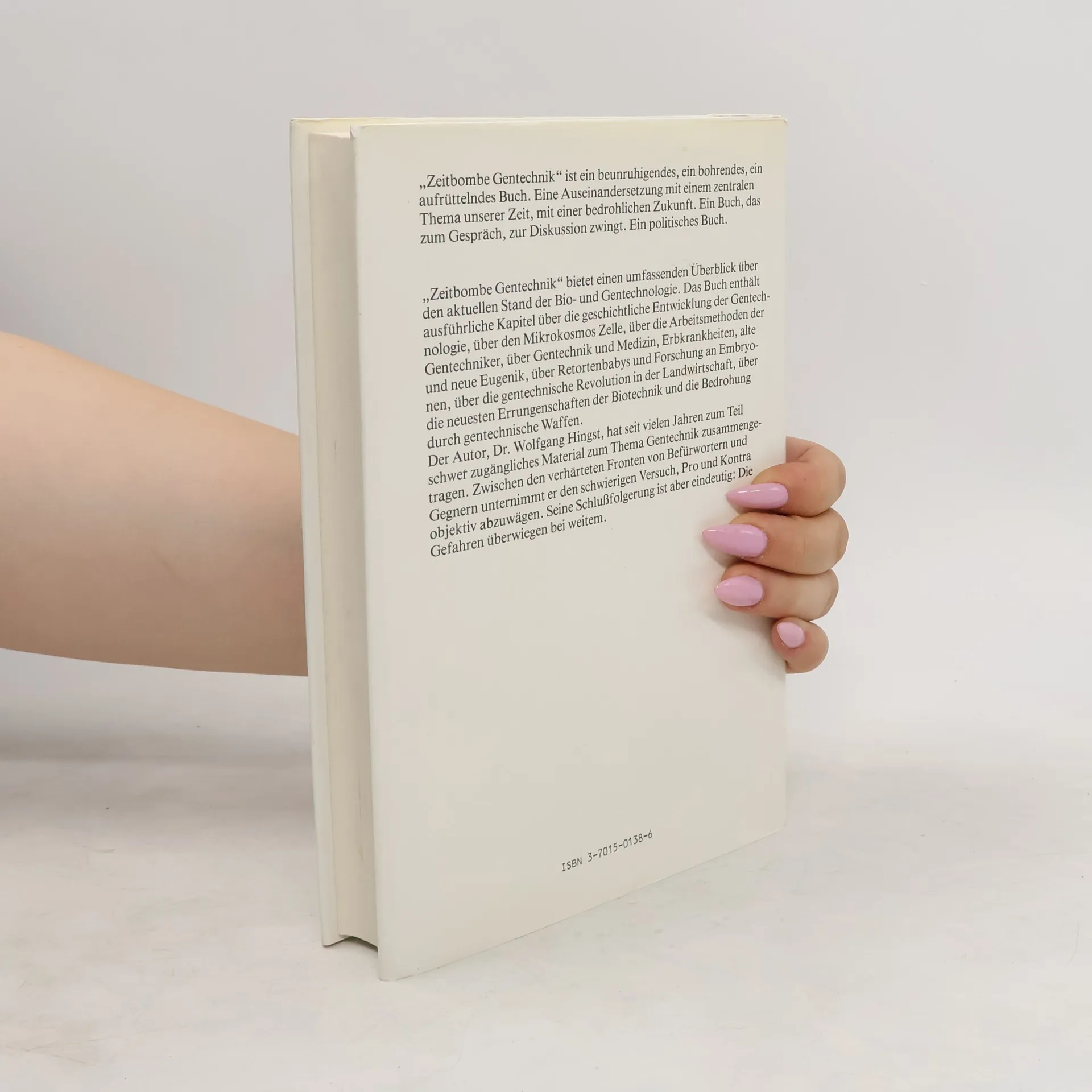 Inhalt: Die Apokalypse hat schon begonnen: Genmanipulierte "Bio"Waffen - Fortpflanzungstechnik: Das Tor zur Hölle - Alte und neue Eugenik - Ein Code mit vier Buchstaben: Der Bauplan des Lebens - "Der heilige Gral": Das menschliche Genom - Der Ursprung der Gentechnik - Genetic Engeneering - Mikrokosmos Zelle - Gentechnik und Medizin -Patentiertes Leben - "Genefarming": Gentechnik und Landwirtschaft - Gentechnik und Biotechnik - Die "ganz normalen" Gefahren der Gentechnik - Schlußfolgerungen - Stichwortverzeichnis - Literaturverzeichnis