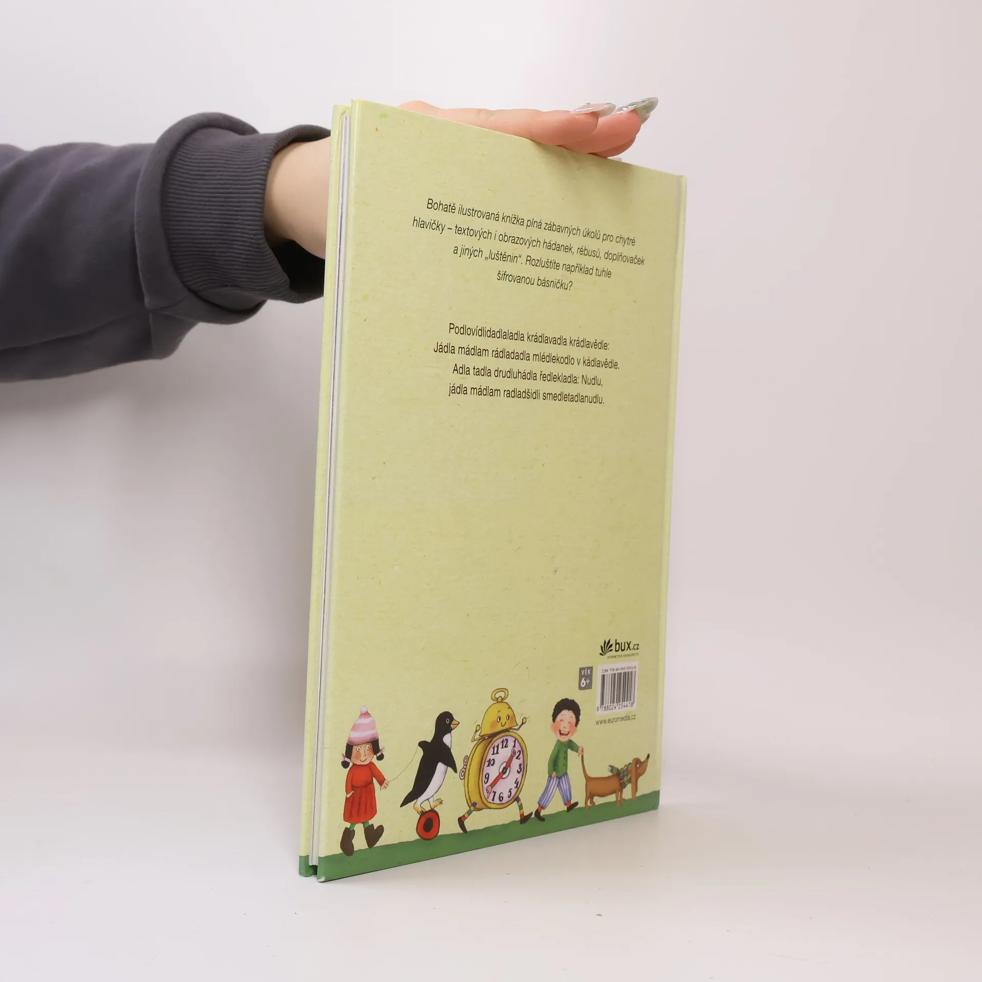 Bohatě ilustrovaná knížka plná zábavných úkolů – hádanek, rébusů, doplňovaček a jiných „luštěnin“ textových i obrazových. Rozluštíte například šifrovanou básničku? Podlovídlidadlaladla krádlavadla krádlavědle: Jádla mádlam rádladadla mlédlekodlo v kádlavědle. Adla tadla drudluhádla ředlekladla: Nudlu, jádla mádlam radladšidli smedletadlanudlu. Pro čtenáře od 8 let.