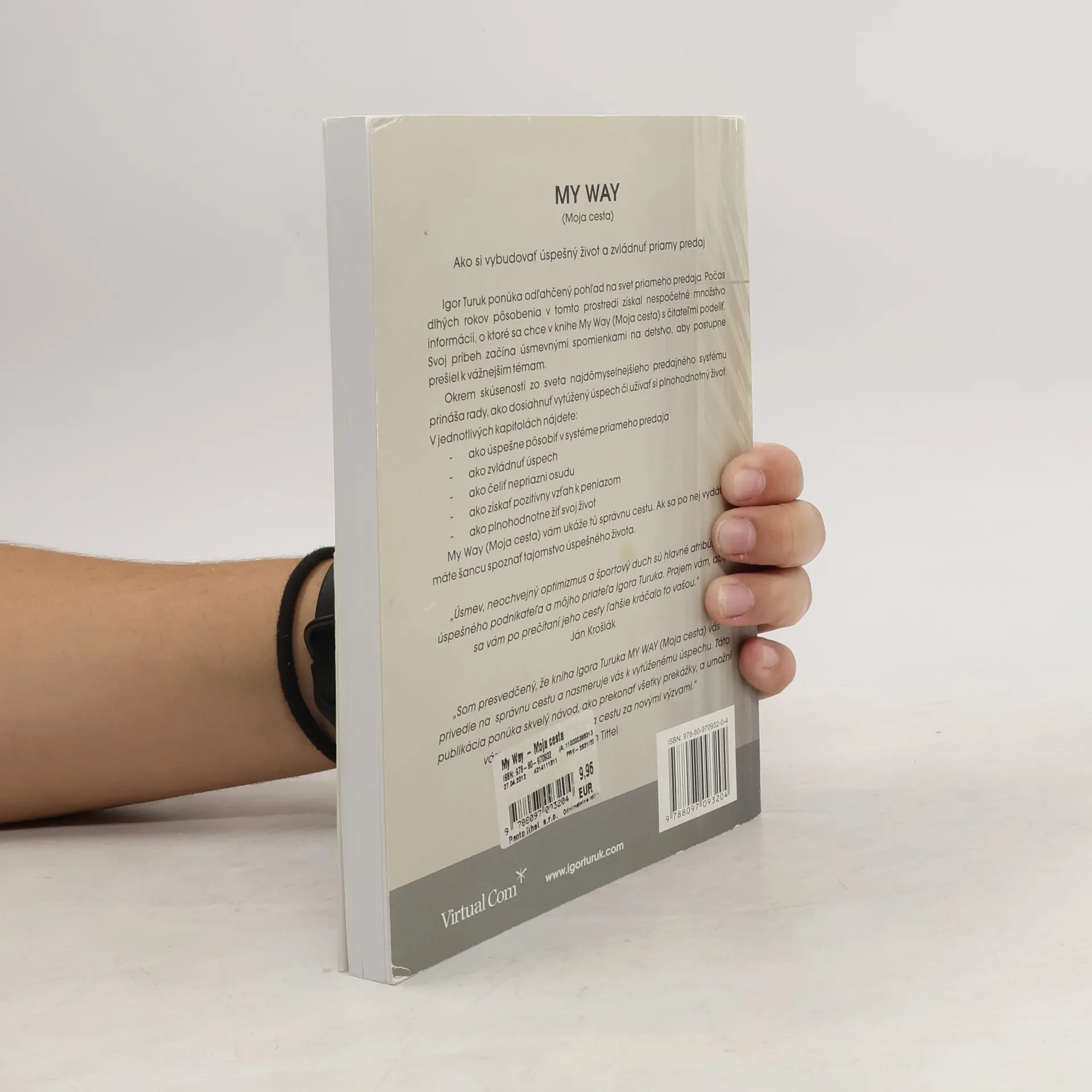 Ako si vybudovať úspešný život a zvládnuť priamy predaj Igor Turuk ponúka odľahčený pohľad na svet priameho predaja. Počas dlhých rokov pôsobenia v tomto prostredí získal nespočetné množstvo informácií, s ktorými sa chce v knihe My Wy (Moja cesta) s čitateľmi podeliť. Svoj príbeh odštartujte úsmevnými spomienkami na detstvo, aby postupne prešiel k vážnejším témam. Okrem skúseností zo sveta najdôvtipnejšieho predajného systému prináša rady, ako dosiahnuť vytúžený úspech či si užívať plnohodnotný život. V jednotlivých kapitolách nájdete: ako úspešne pôsobiť v systéme priameho predaja ako zvládnuť úspech ak čeliť nepriazni osudu ako získať pozitívny vzťah k peniazom ako plnohodnotne žiť svoj život My Way (Moja cesta) vám ukáže tú správnu cestu. Pokiaľ sa po nej vydáte, máte šancu spoznať tajomstvo úspešného života.