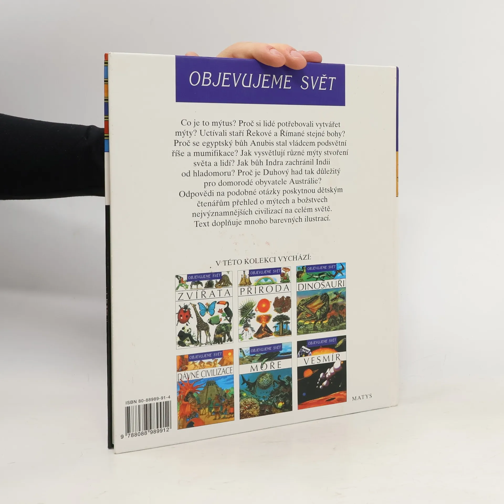 Co je to mýtus? Proč si lidé potřebovali vytvářet mýty? Uctívali staří Řekové a Římané stejné bohy? Proč se egyptský bůh Anubis stal vládcem podsvětní říše a mumifikace? Jak vysvětlují různé mýty stvoření světa a lidí? Jak bůh Indra zachránil Indii od hladomoru? Proč je duhový had tak důležitý pro domorodé obyvatele Austrálie? Odpovědi na podobné otázky poskytnou dětským čtenářům přehled o mýtech a božstvech nejvýznamnějších civilizací na celém světě. Text doplňuje mnoho barevných ilustrací