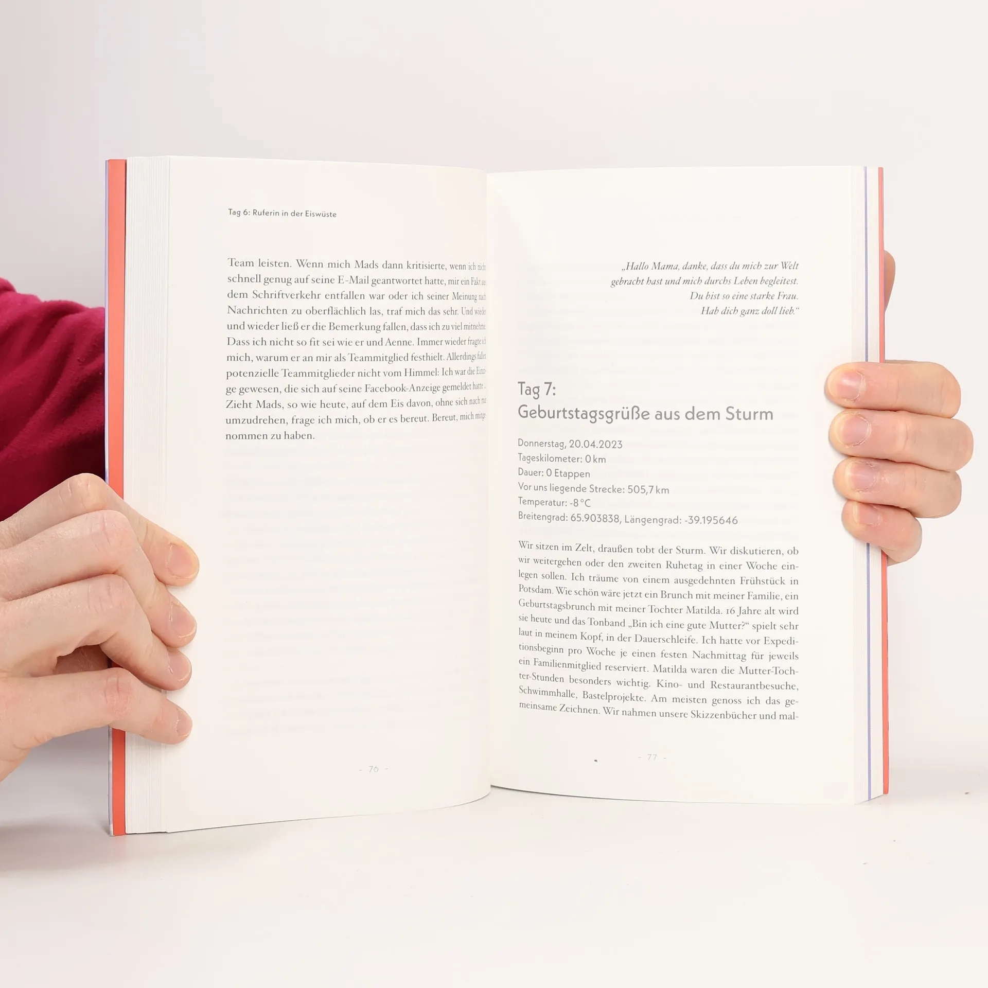 MIT ENDE 40 bricht Geertje Marquardt aus ihrem Familienalltag als zweifache Mutter auf, um einen Lebenstraum zu verwirklichen: eine 560 Kilometer lange Überquerung des grönländischen Inlandeises auf Skiern. Sie erzählt von schwierigen Vorbereitungen, körperlichen Herausforderungen und persönlichen Zerreißproben. Von der Angst vor Eisbären, von tosenden Stürmen und dem Kampf mit den inneren Dämonen. Vor allem aber von ihrer tiefen Liebe zu Schnee und Eis und der fast schmerzhaft schönen Sehnsucht nach der klaren Weite des arktischen Horizonts. Mit nach Hause brachte sie Wunden, die irgendwann heilen, und tiefe Erkenntnisse, die für immer bleiben werden.