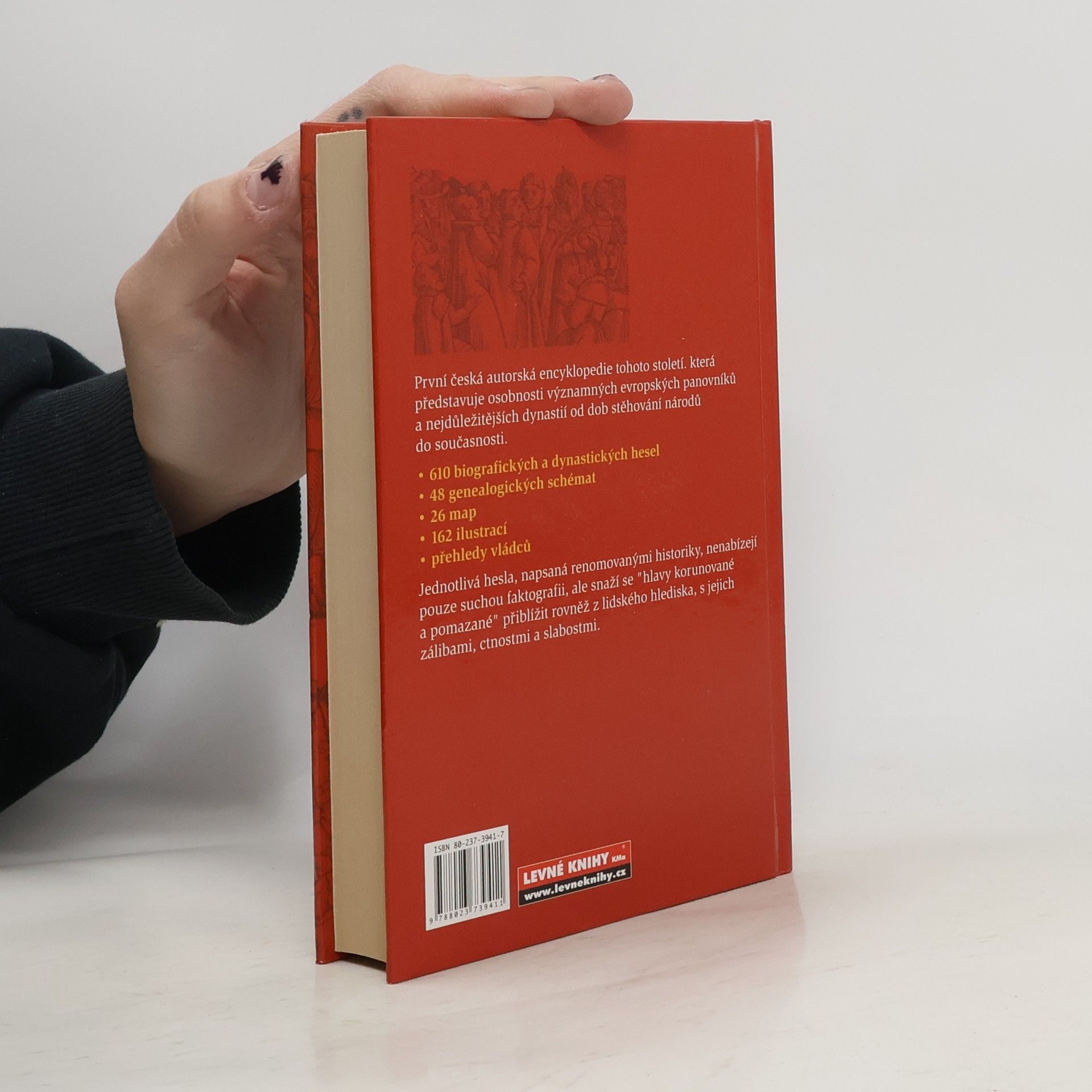 Encyklopedie. Původní dílo českých historiků. Kromě Evropy obsahuje biografická hesla věnovaná též vládcům Byzance, Balkánu a Ruska. Doplněno přehledem vládnoucích dynastií jednotlivých evropských zemí a genealogickými schématy. Významní evropští panovníci a panovnické rody od 5. do 20. stol.
