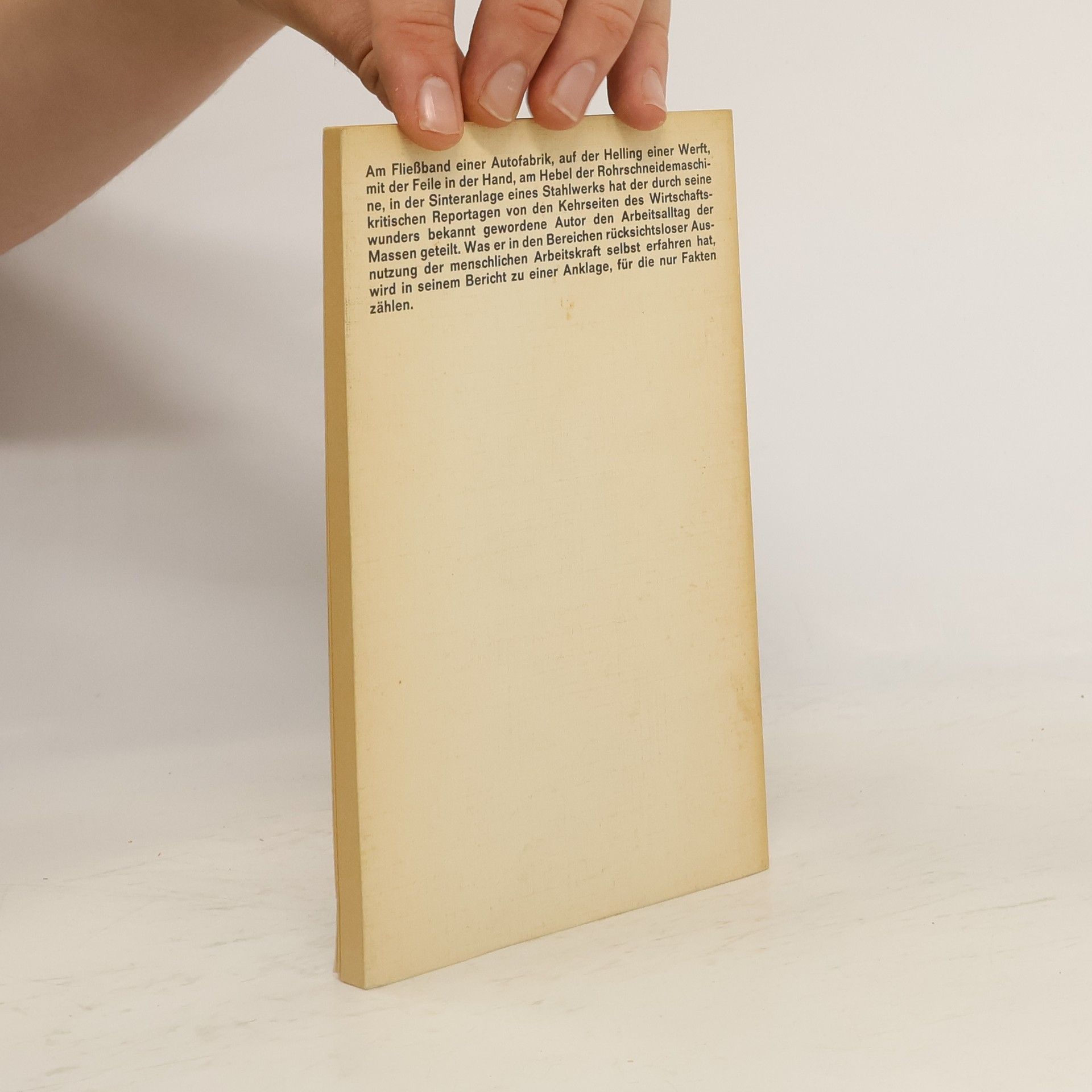 Als Hilfsarbeiter heuert Günter Wallraff zwischen 1963 und 1965 in verschiedenen Großbetrieben an: am Fließband bei Ford in Köln, im Akkord bei Siemens in München oder als Reiniger in Sinter zwo auf der August-Thyssen-Hütte in Duisburg-Hamborn. Zwischen Förderbändern, gigantischen Kesseln und rotierenden Kühlern, in Dreck und tosendem Lärm lernt er die Härte der industriellen Arbeitswelt am eigenen Leib kennen. Günter Wallraff, geboren 1942 in Burscheid bei Köln. Zuerst Buchhändler, dann Journalist und Schriftsteller. Heute engagiert er sich vor allem in Ostdeutschland gegen Rechtsradikalismus und Rassismus. Zahlreiche weitere Veröffentlichungen