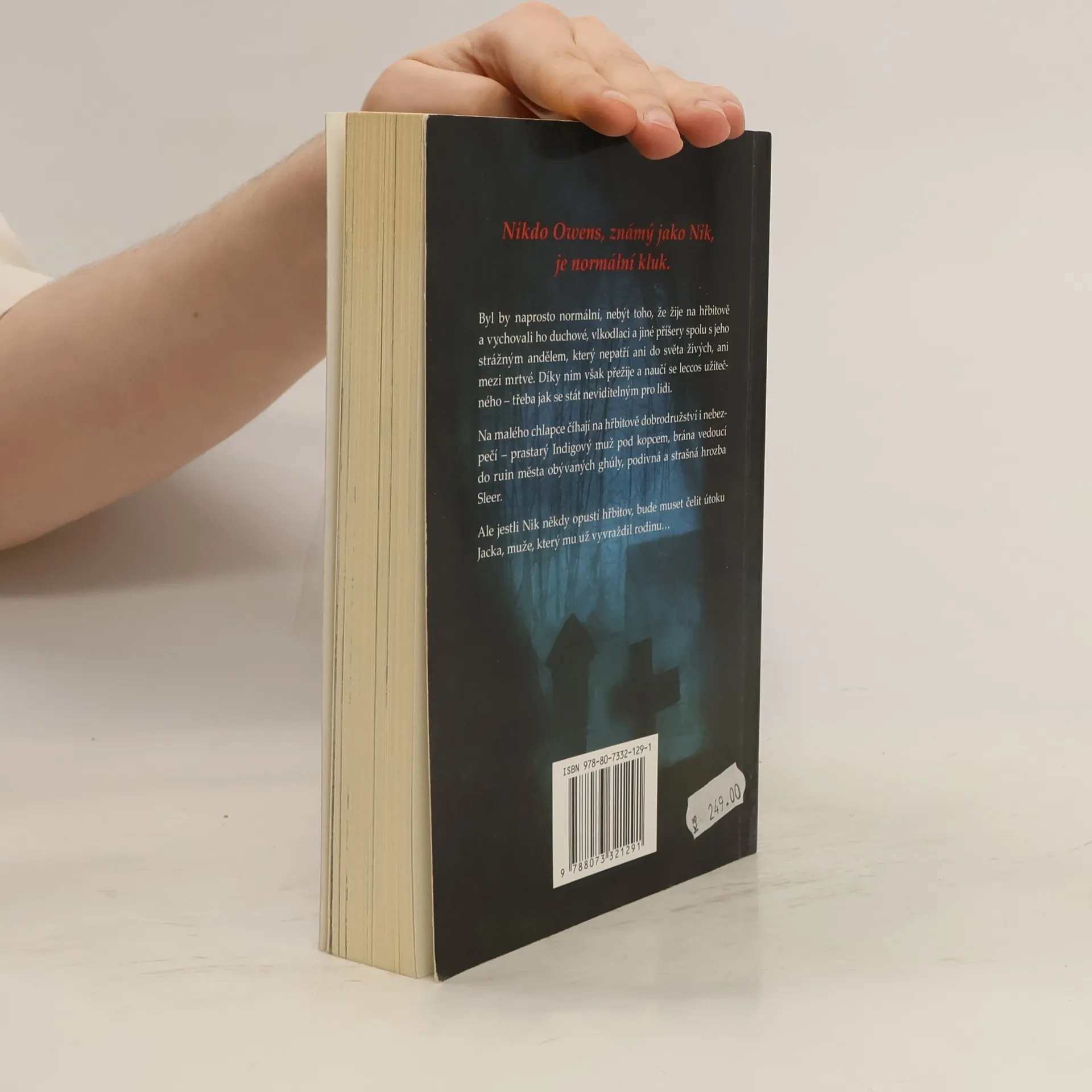 Nikdo Owens, známý jako Nik, je normální kluk. Byl by naprosto normální, nebýt toho, že žije na hřbitově a vychovali ho duchové, vlkodlaci a jiné příšery spolu s jeho strážným andělem, který nepatří ani do světa živých, ani mezi mrtvé. Díky nim však přežije a naučí se leccos užitečného - třeba jak se stát neviditelným pro lidi. Na malého chlapce číhají na hřbitově dobrodružství i nebezpečí - prastarý Indigový můž pod kopcem, brána vedoucí do ruin města obývaných ghúly, podivná a strašná hrozba Sleer. Ale jestli Nik někdy opustí hřbitov, bude muset čelit útoku Jacka, muže, který mu už vyvraždil rodinu...