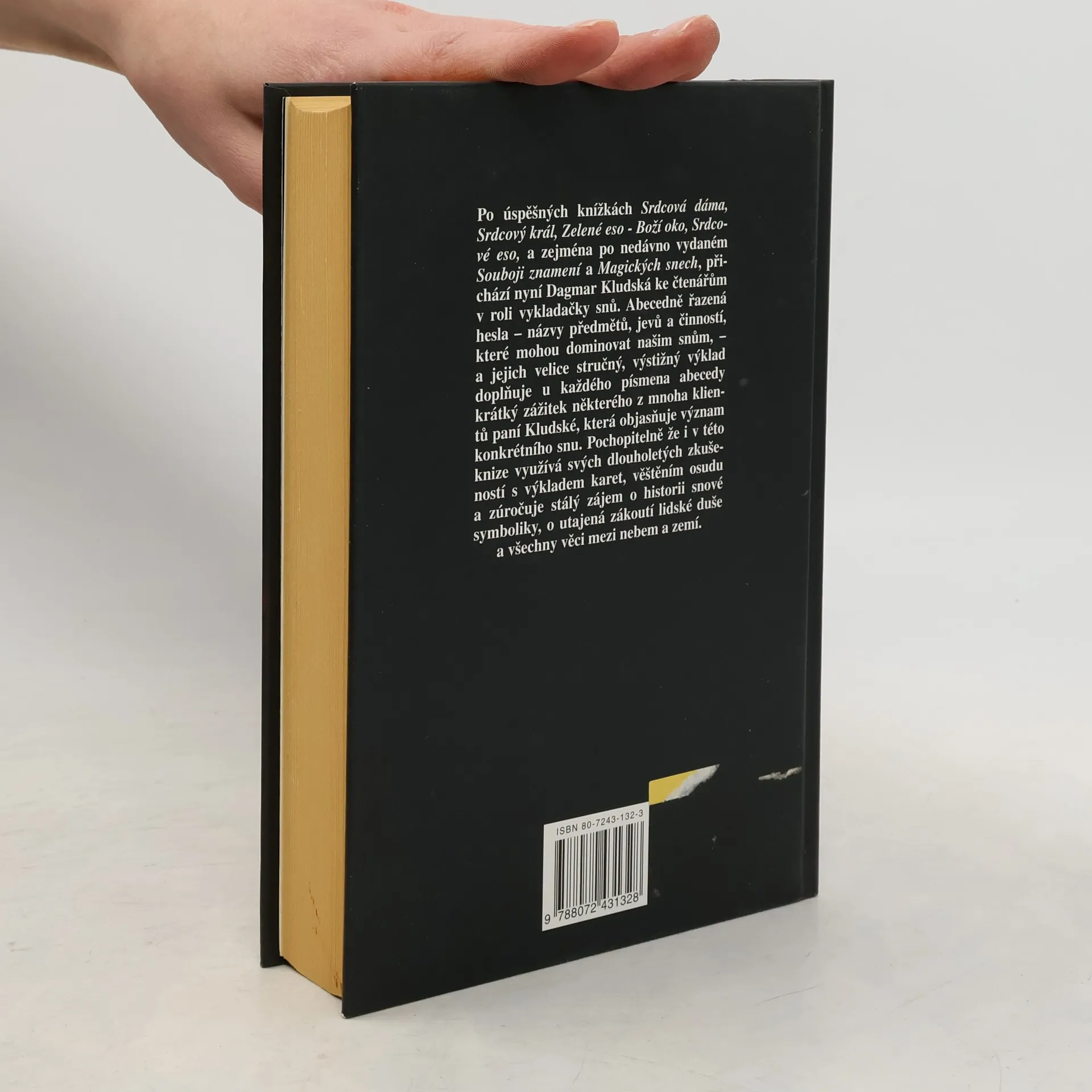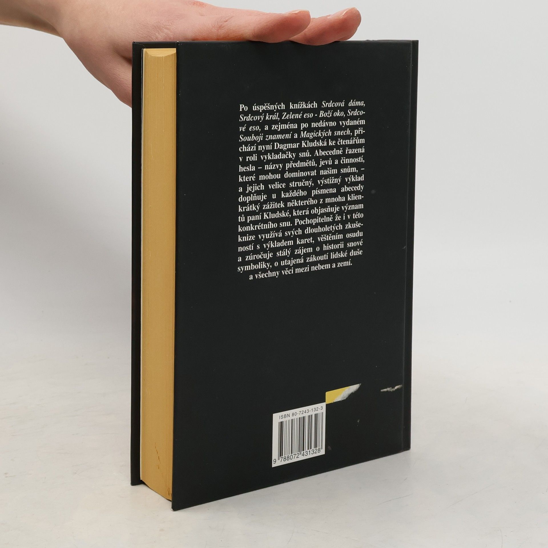 Po úspěšných knihách Srdcová dáma, Srdcové eso aj. přichází autorka ke čtenářům v roli vykladačky snů. Abecedně řazená hesla - názvy předmětů, jevů a činností, které mohou dominovat našim snům - a jejich stručný, výstižný výklad doplňuje u každého písmena abecedy krátký zážitek některého z mnoha klientů paní Kludské, důležitý při objasnění snu. Pochopitelně i v této knize využívá autorka svých dlouholetých zkušeností s výkladem karet, věštěním osudu a zúročuje stálý zájem o historii snové symboliky, o utajená zákoutí lidské duše a všechny záhadné věci mezi nebem a zemí.