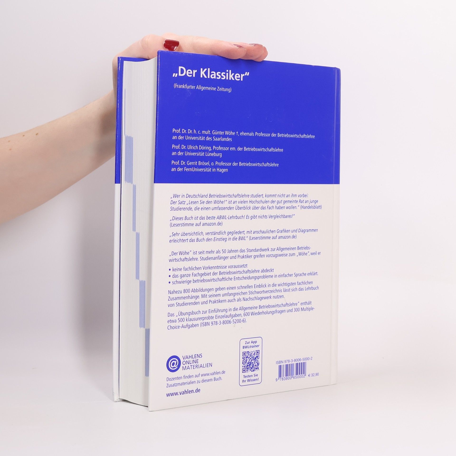 Der Klassiker ist wieder topaktuell: Der neue Wöhe bietet zahlreiche Vorteile und ist ein Bestseller zur Allgemeinen Betriebswirtschaftslehre (ABWL). Mit einem modernen Layout, rund 800 Abbildungen und Schaubildern präsentiert es sich einprägsam und leicht verständlich, unterstützt durch zahlreiche Praxisbeispiele. Das Buch liefert einen hervorragenden Überblick über das Fach, wie die FAZ feststellt, und hat bis heute nichts von seiner Qualität und Bedeutung verloren. Es richtet sich insbesondere an Bachelor-Studierende, die es als besonders geeignet empfinden. In über fünfzig Jahren hat sich der Wöhe zum führenden Standardwerk entwickelt. Er wird von Studienanfängern und Praktikern bevorzugt, da er keine fachlichen Vorkenntnisse voraussetzt, das gesamte Fachgebiet abdeckt und komplexe betriebswirtschaftliche Entscheidungsprobleme in einfacher Sprache erklärt. Die 26. Auflage spiegelt den aktuellen Stand der ABWL wider und enthält neue Abschnitte zu Personalwirtschaft, Risikomanagement und „Industrie 4.0“. Das Lehrbuch ist durchgehend zweifarbig gestaltet und bietet mit etwa 800 Abbildungen und Übersichten einen schnellen Überblick über die wichtigsten Zusammenhänge. Das umfangreiche Stichwortverzeichnis ermöglicht eine Nutzung als Nachschlagewerk. Zielgruppe sind alle Studierenden in wirtschaftlichen und wirtschaftnahen Studiengängen.