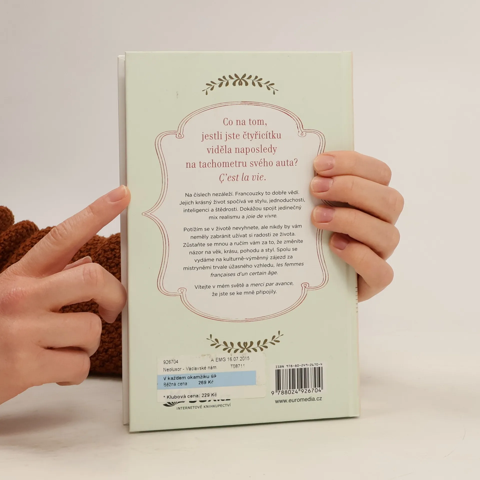 Tajemství a tipy Francouzek pro stálou krásu, styl a šarm Francouzky jistého věku (ty nad čtyřicet) jsou zajímavé, pečují o svůj intelekt a umění konverzace stejně jako o šarm a fyzický vzhled. Působí mladší, než ve skutečnosti jsou, a úchvatný styl si udrží po celý život. Americká módní novinářka zkoumá, jak se jejich oblečení, krása, stravovací návyky a péče o vlasy mění v průběhu historie a jak některé součásti osobitého stylu Francouzek zůstávají neměnné. Ukazuje, že Francouzky zdůrazňují své přednosti a jen zřídka hovoří o svých slabinách, chybách nebo obavách.