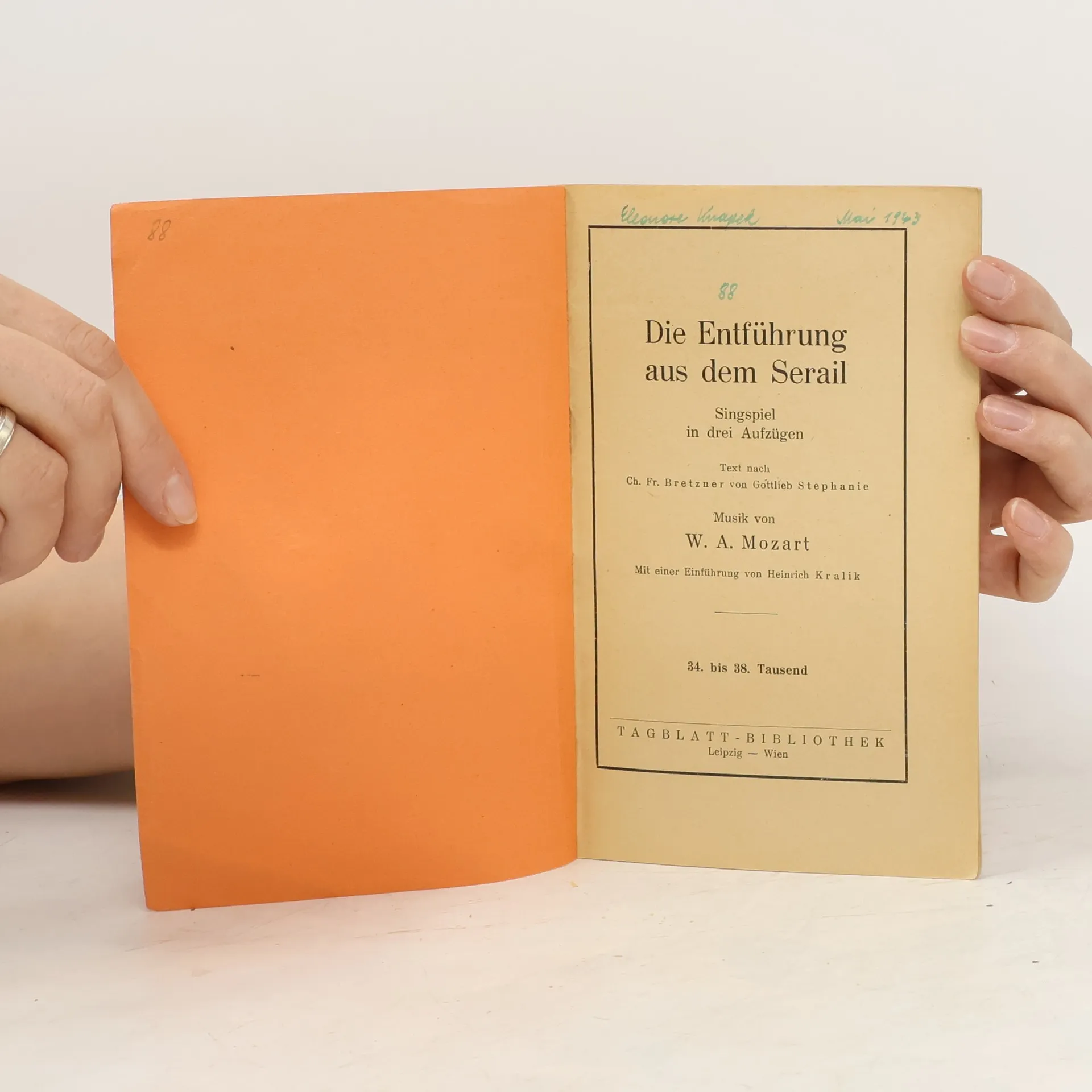 Materialien zur Geschichte des Librettos; W. A. Mozart: Die Entführung aus dem Serail. Faksimiles zur Geschichte des Librettos; C. F. Bretzner: Belmont und Constanze, oder: Die Entführung aus dem Serail. Leipzig 1781; Autograph von W. A. Mozart (1781): Die Entführung aus dem Serail. Anfang des ersten Aktes mit zeilengleicher Uebertragung; Die Entführung aus dem Serail. Wien 1782. Bearbeitung des Librettos von C. F. Bretzner durch J. G. Stephanie d. J./W. A. Mozart.