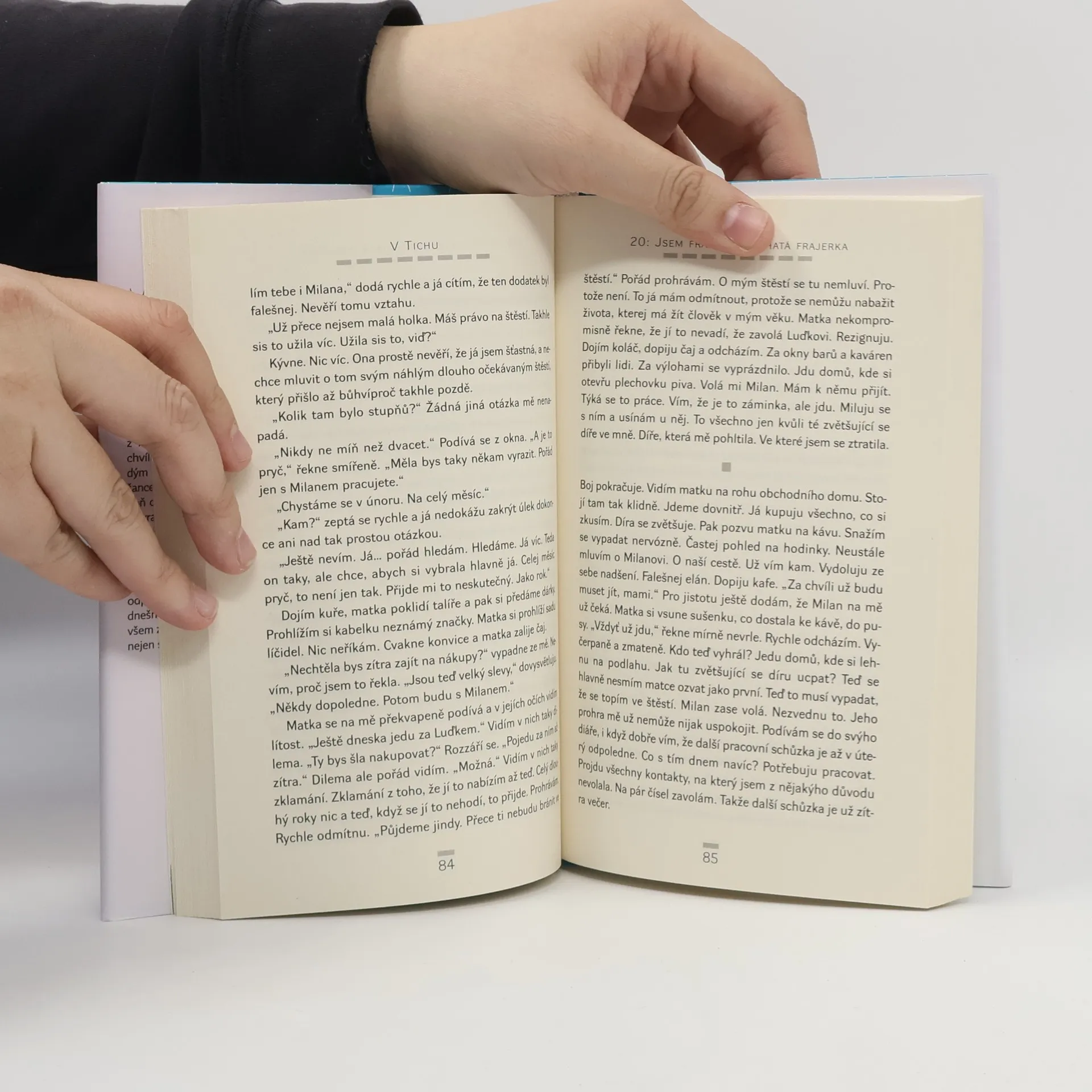 Pozoruhodná novela mladé autorky zachycuje výsek života bezejmenné hrdinky, mladé holky, pro niž se v patnácti otvírá lákavý svět dospělých, plný zdánlivě neomezených možností. Zprvu citlivá a jaksi popudlivá k životu se snaží probojovat tak trochu zoufalým způsobem k čemukoliv, co připomíná štěstí. Ale brzy se dostane do věku, kdy si uvědomí, že karty, které byly rozdány, se už nezmění. Neustále se snaží něco rychle změnit, rychle žít, rychle dobýt svět, a přitom se nehne z místa. Její pubertální boj o lepší život střídá boj dospělé ženy, jejíž snaha neustále být lepší než ostatní vyznívá marně v patnácti, ve dvaceti i ve třiceti. A nemění se ani bar Ticho, kam se v noci chodí skrýt před realitou… a sama před sebou.