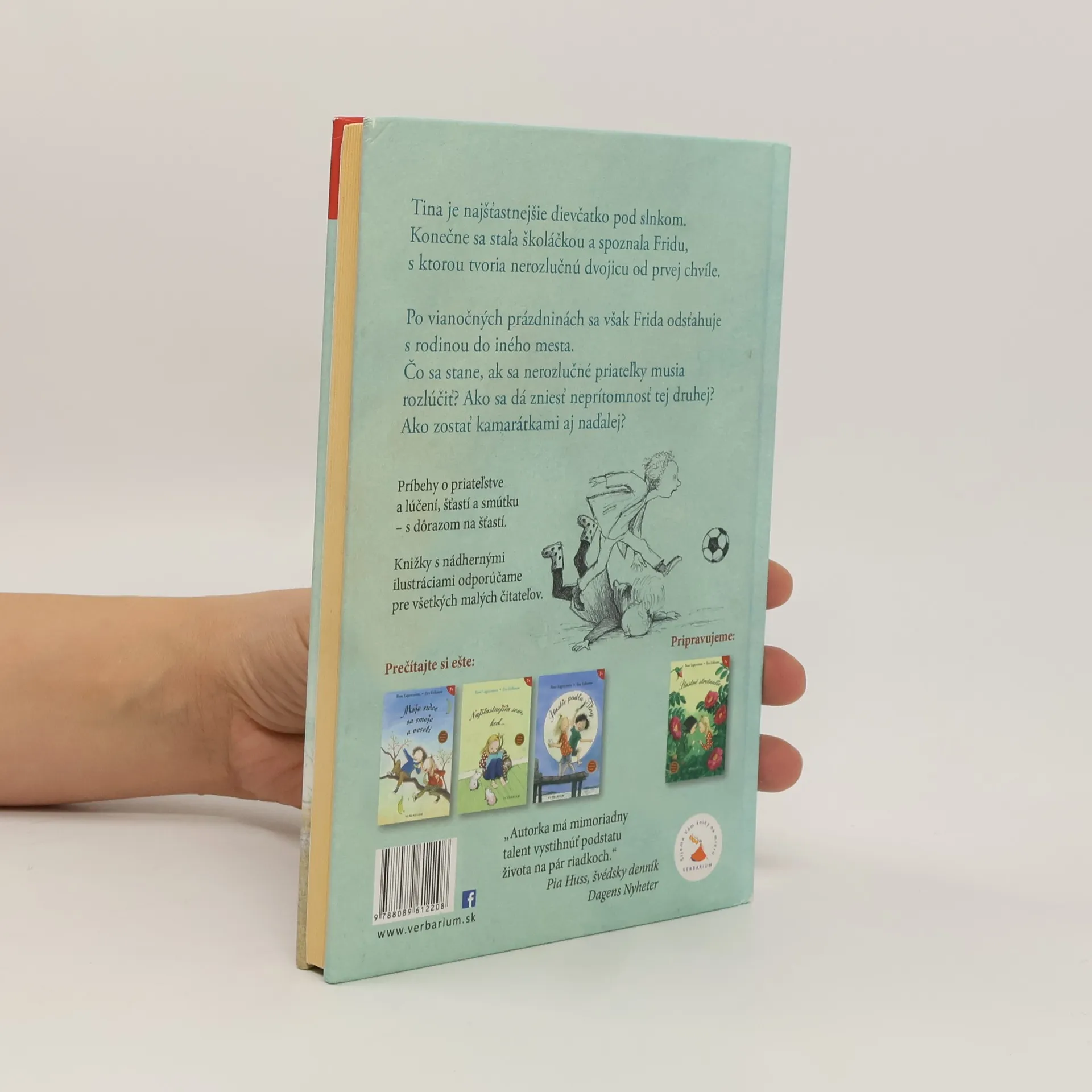 Tina je najšťastnejšie dievčatko pod slnkom. Konečne sa stala školáčkou a spoznala Fridu, s ktorou tvoria nerozlučnú dvojicu od prvej chvíle. Po vianočných prázdninách sa však Frida odsťahuje s rodinou do iného mesta. Čo sa stane, ak sa nerozlučné priateľky musia rozlúčiť? Ako sa dá zniesť neprítomnosť tej druhej? Ako zostať kamarátkami aj naďalej? Príbeh o priateľstve a lúčení, šťastí a smútku – s dôrazom na šťastí. Knižku s nádhernými ilustráciami odporúčame pre všetkých malých čitateľov.