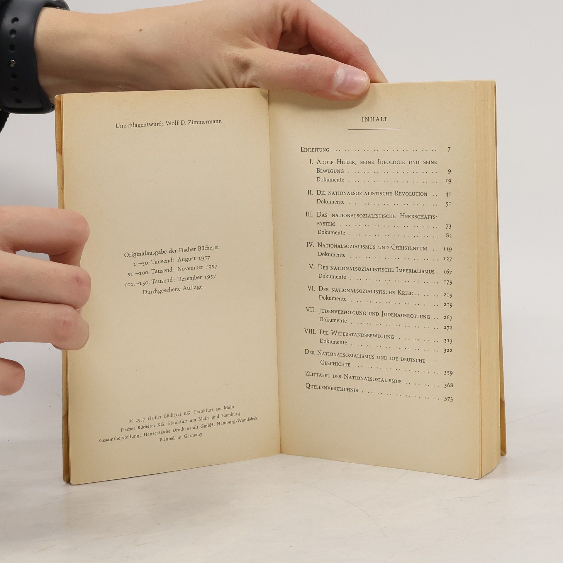 Die Erfahrung hat gelehrt, dass geschichtliche Ereignisse erst in gehörigem Abstand interpretiert und sachlich dargestellt werden können. Aus diesem Grunde unterlagen auch viele Publikationen über das Phänomen des Nationalsozialismus tendenziösen Einflüssen und begegneten dadurch zum Teil dem Widerstand der Leserschaft. Wir haben daher versucht, die politischen Ereignisse der jüngsten deutschen Vergangenheit selbst sprechen zu lassen. Die Dokumente, die Walther Hofer, Professor für Neuere Geschichte an der Universität Bern, zusammengestellt und kommentiert hat, sprechen eine beredte Sprache. Jeder Satz hat authentischen Aussagewert und steht für eine menschliche und politische Haltung, die als abschreckendes Exempel der Gegenwart vor Augen geführt werden muss. Wir hoffen, dass dieses Brevier der Unmenschlichkeit, das zugleich die Kräfte eines anderen, besseren Deutschland beschwört, seine Wirkung auf die Leser nicht verfehlen wird.