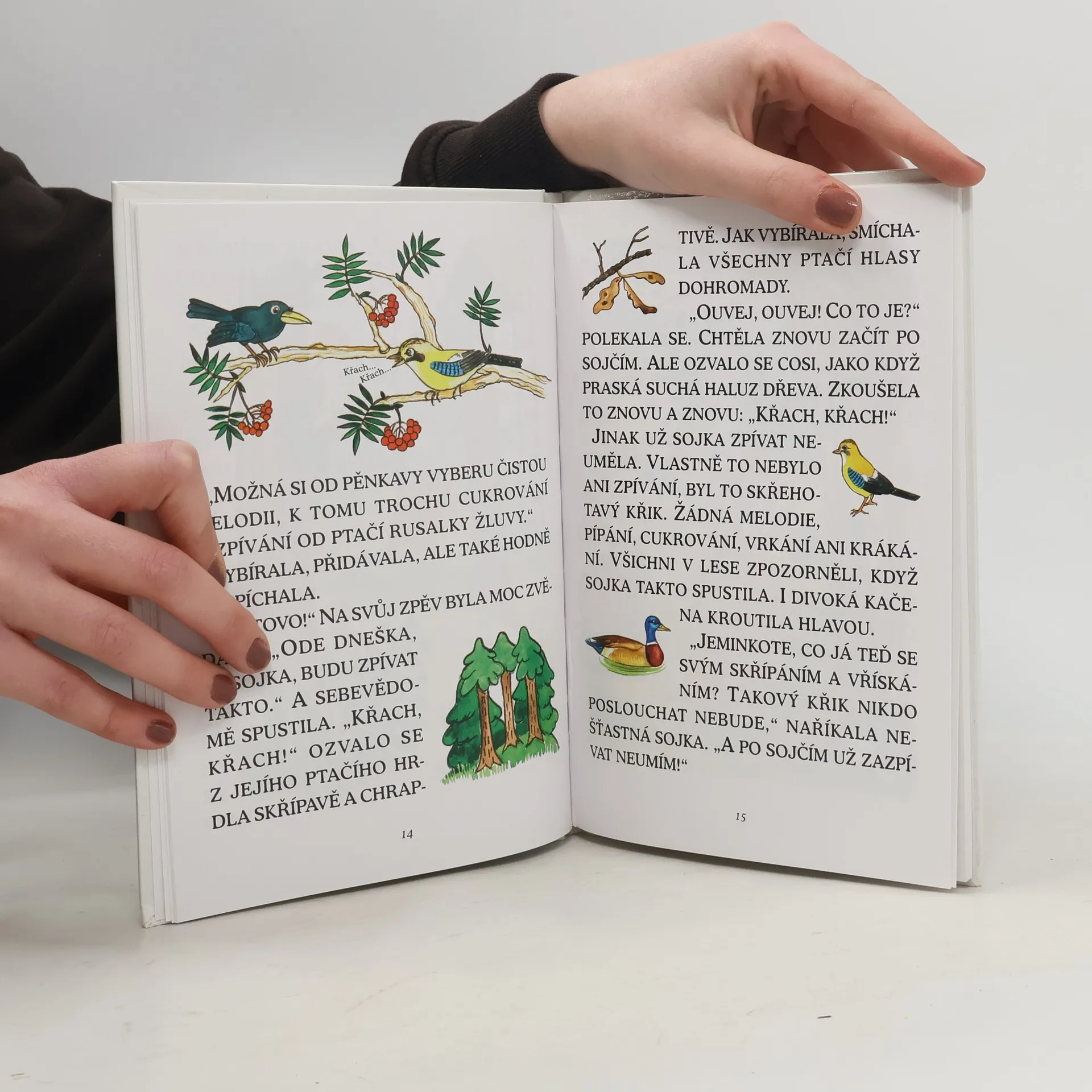 Kniha s velkými písmeny pro malé čtenáře obsahuje tyto pohádky: Sojčí pohádka, Liščí pohádka, Nejlepší med, Krtek králem, Kohout Fejfara.