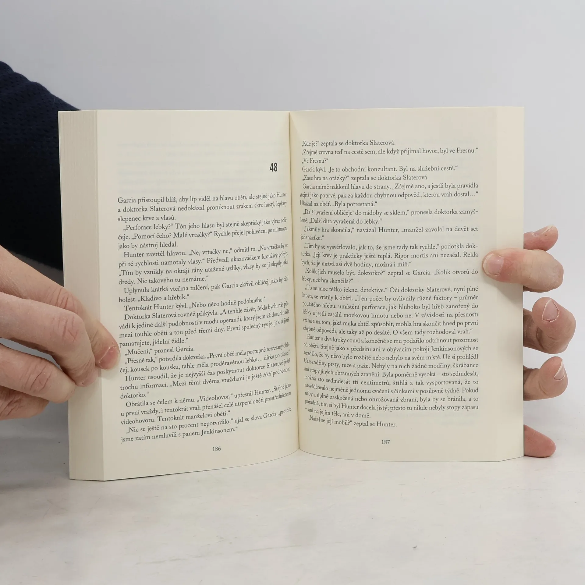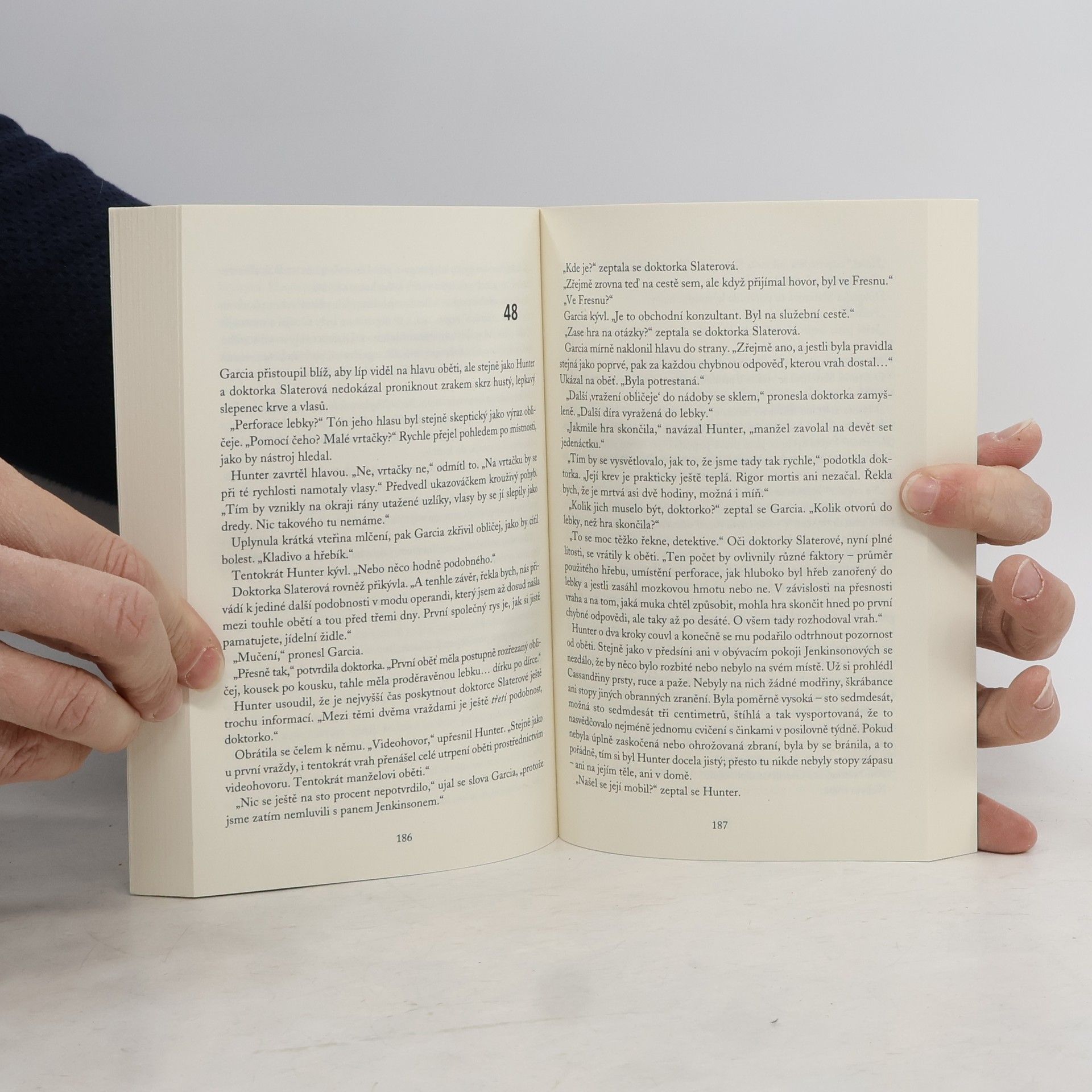 Losangeleští detektivové Hunter a Garcia se při vyšetřování nového případu ocitnou na horské dráze zla. Pronásledují predátora, který hledá v ulicích a na sociálních sítích oběti, dráždí je anonymními zprávami a živí se jejich strachem. přední záložka: Po náročném týdnu se Tanya Kaitilinová těší na odpočinkový večer doma. Když vyjde ze sprchy, uslyší zvonit mobil. Požadavek na videohovor přichází od její nejlepší přítelkyně Karen Wardové. Tanya hovor přijme a noční můra začíná. Karen je s roubíkem v ústech připoutaná k židli v obývacím pokoji svého bytu. Jestliže Tanya hovor přeruší nebo odvrátí pohled od kamery, bude příště na řadě ona, slibuje hluboký chraplavý démonický hlas na druhém konci linky. A pokud Tanya neodpoví pravdivě na jeho otázku, on její přítelkyni Karen brutálně zavraždí. Jenže vyděšená Tanya si správnou odpověď nevybaví.