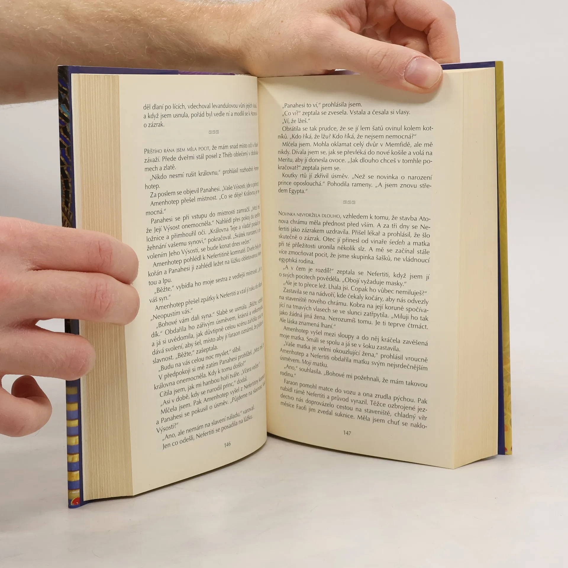 Kniha popisuje strhující život egyptské královny a později také faraonky Nefertiti. Knihou nás provází její nevlastní sestra Mutnežemet. Patnáctiletá Nefertiti přijde ke královskému dvoru jako nová žena následníka trůnu Amenhotepa 4. Velkou sokyní se mladé královně stane první faraonova žena Kija , s níž soupeří o postavení první manželky a vliv u dvora.Nefertiti získavá nad svým mužem stále větší moc , ale všechny její děti jsou dcery . Když Kija porodí syna ,korunního prince , ctižadostivá Nefertiti spřáda intriky , jak nástupnické uspořadání v Egyptě změnit . Ale s rostoucími ambicemi přibyvá i mocných nepřátel.......
