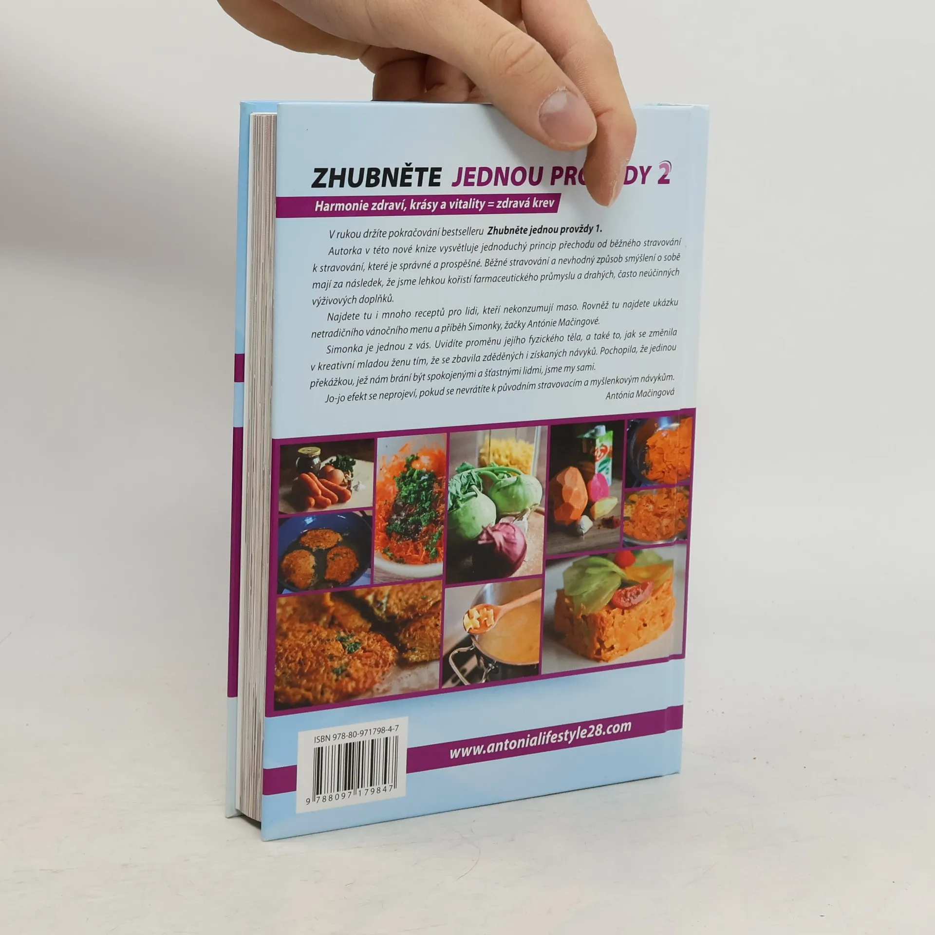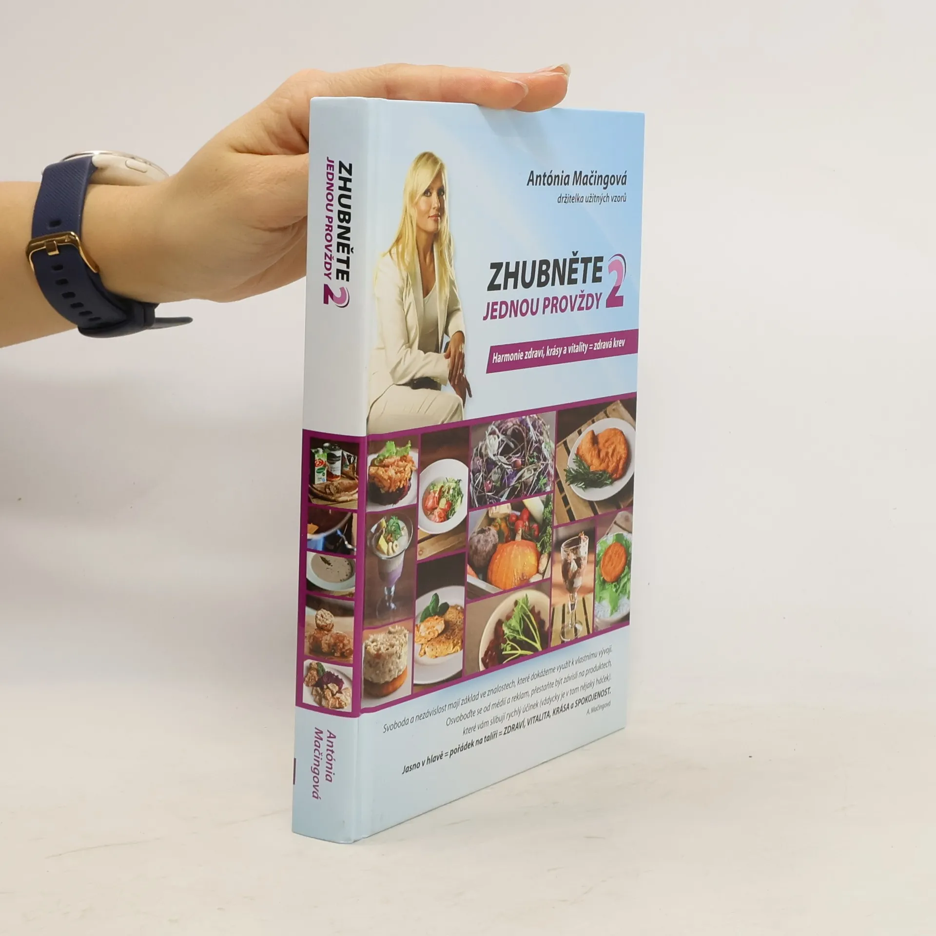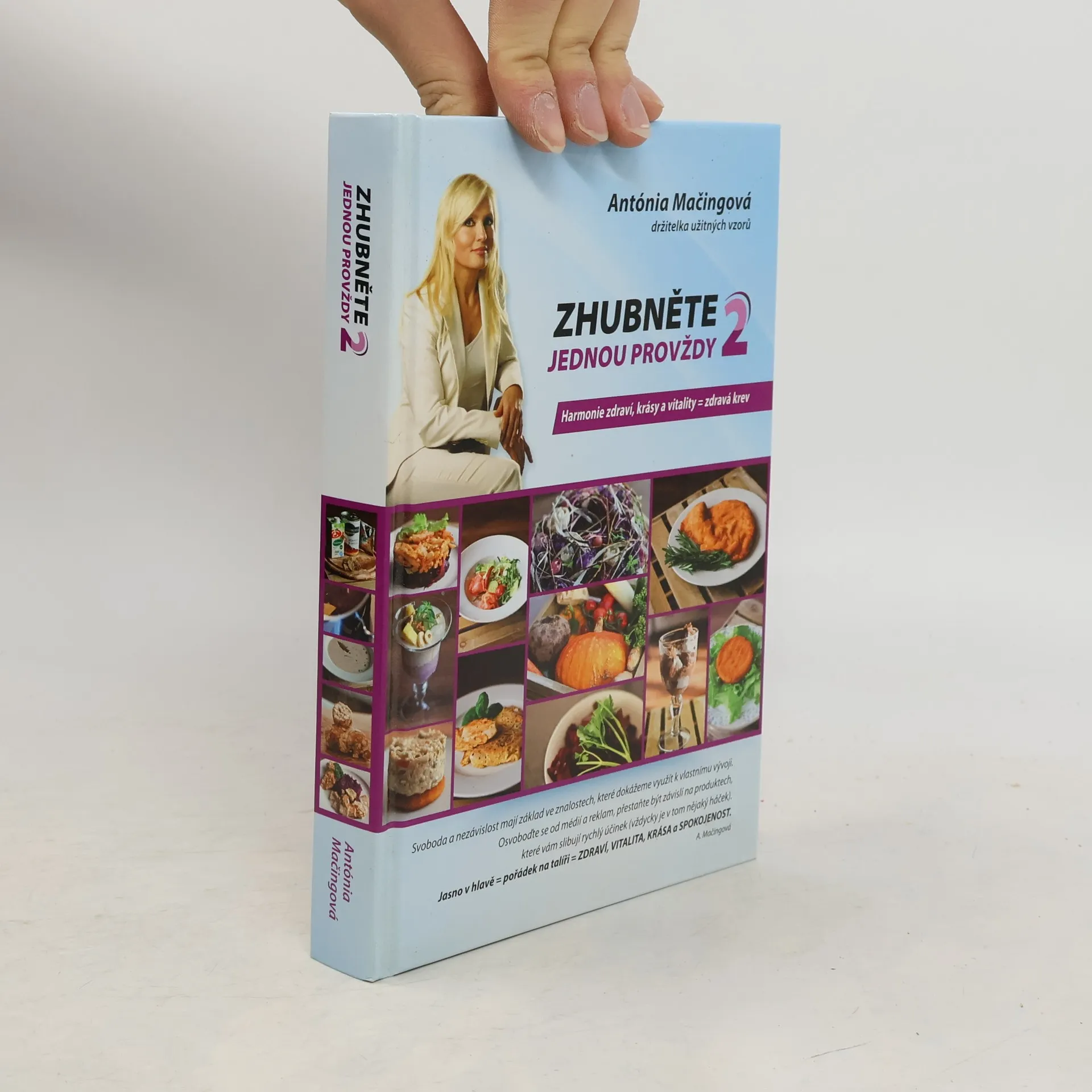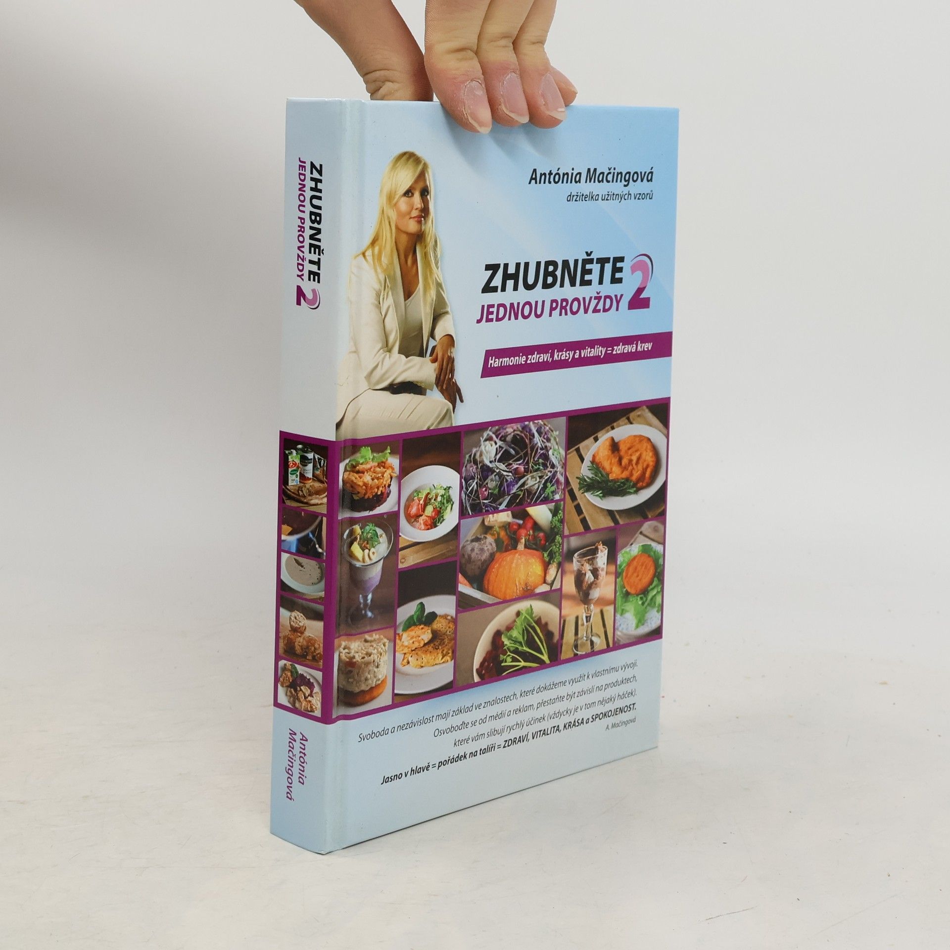 Upravené vydání knihy Harmonie zdraví, krásy a vitality. Pokračování bestselleru Zhubněte jednou provždy. Autorka Antónia Mačingová v této knize vysvětluje jednoduchý princip přechodu od běžného stravování k stravování, které je správné a prospěšné. Běžné stravování a nevhodný způsob smýšlení o sobě mají za následek, že jsme lehkou kořistí farmaceutického průmyslu a drahých, často neúčinných výživových doplňků. Najdete tu i mnoho receptů pro lidi, kteří nekonzumují maso. Rovněž tu najdete ukázku netradočního vánočního menu a příběh Simonky, žáčky Antónie Mačingové. Simonka je jedna z vás. Uvidíte proměnu jejího fyzického těla, a také to, jak se změnila v kreativní mladou ženu tím, že se zbavila zděděných i získaných návyků. Pochopila, že jedinou překážkou, jež nám brání být spokojenými a šťastnými lidmi, jsme my sami. Jo-jo efekt se neprojeví, pokud se nevrátíte k původním stravovacím a myšlenkovým návykům.