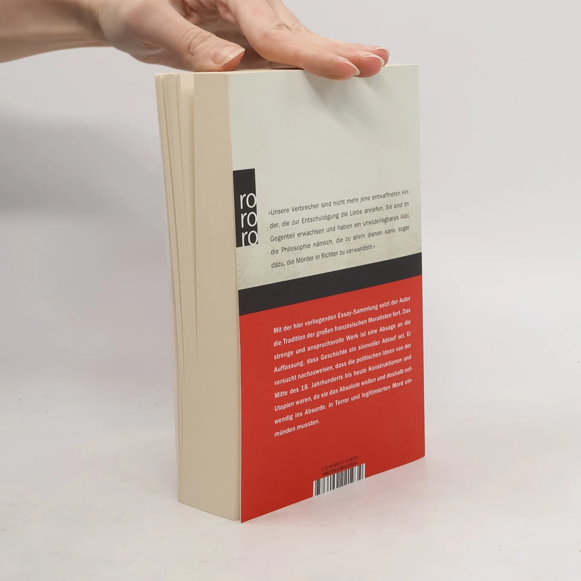 «Unsere Verbrecher sind nicht mehr jene entwaffneten Kinder, die zur Entschuldigung die Liebe anriefen. Sie sind im Gegenteil erwachsen und haben ein unwiderlegbares Alibi, die Philosophie nämlich, die zu allem dienen kann, sogar dazu, die Mörder in Richter zu verwandeln.» Mit der hier vorliegenden Essaysammlung setzt Albert Camus die Tradition der französischen Moralisten fort. Das strenge und anspruchsvolle Werk ist eine Absage an die Auffassung, dass Geschichte ein sinnvoller Ablauf sei. Er versucht nachzuweisen, dass die politischen Ideen von der Mitte des 18. Jahrhunderts bis heute Konstruktionen und Utopien waren, da sie das Absolute wollen, und deshalb notwendig ins Absurde, in Terror und legitimierten Mord einmünden mussten.
