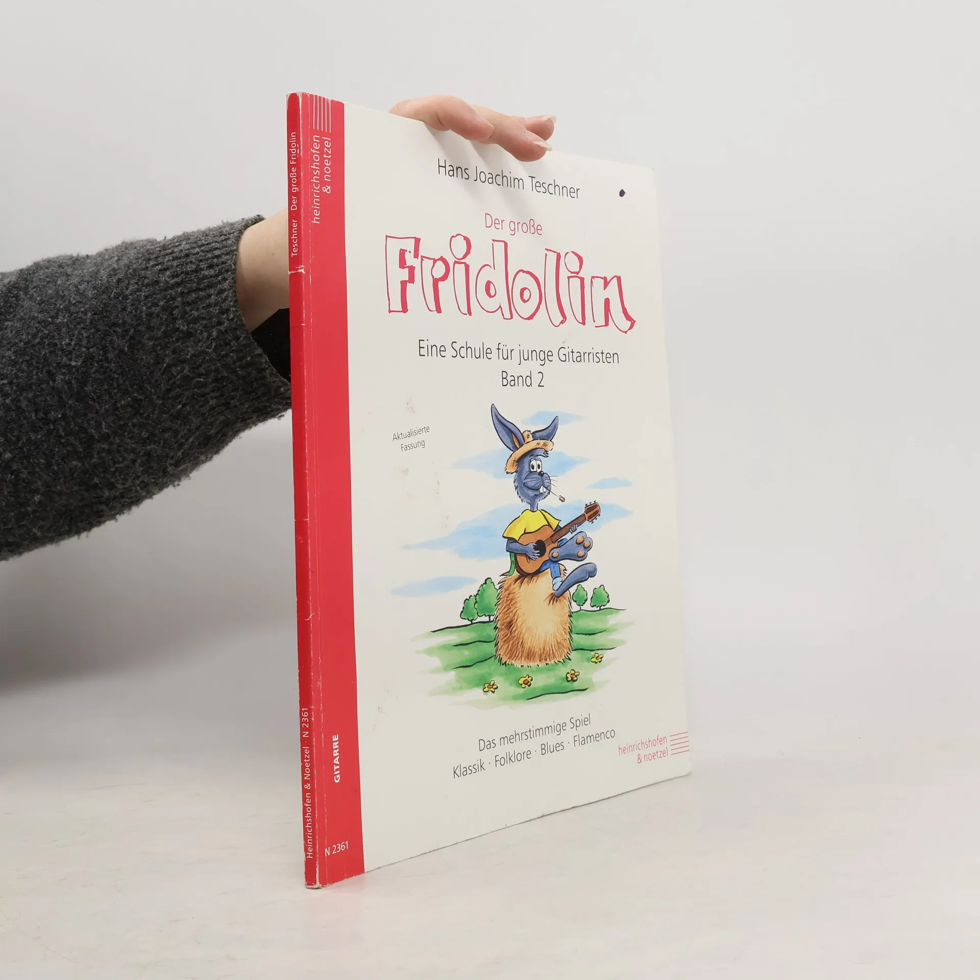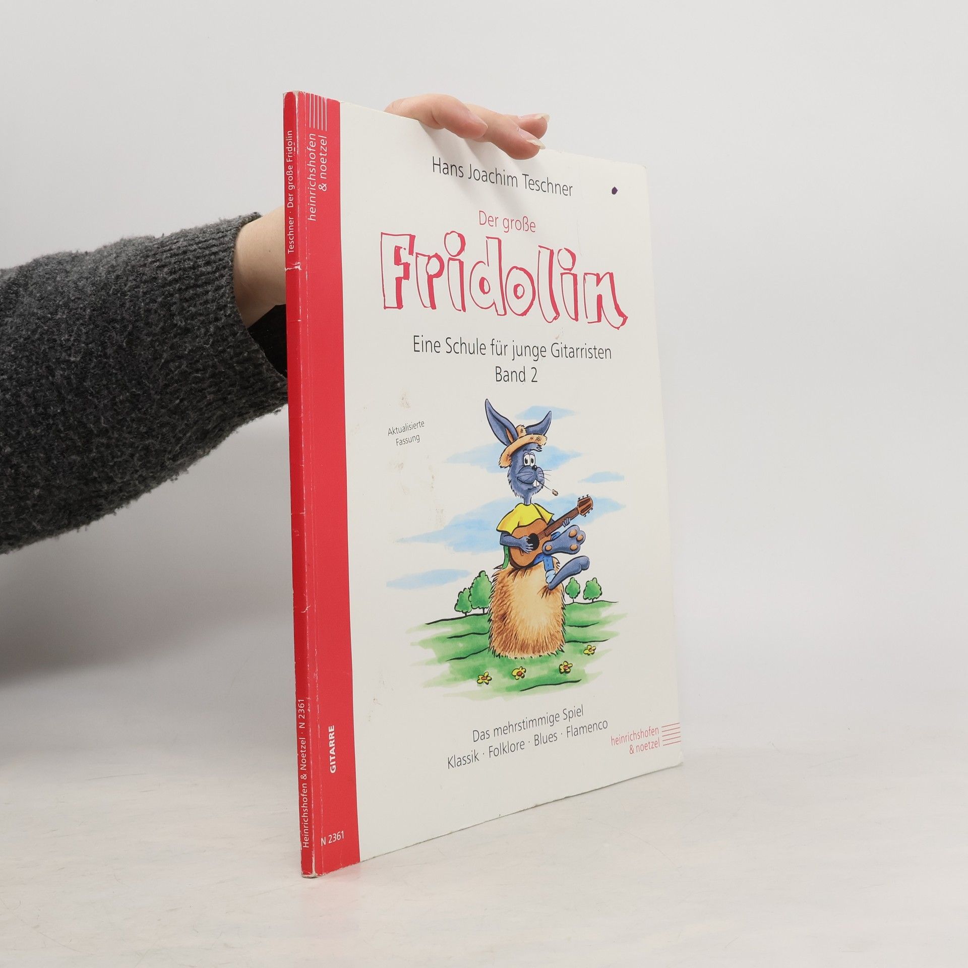 Wer den "Fridolin" erarbeitet hat oder bereits das einstimmige Melodiespiel und leichte zweistimmige Spielstücke beherrscht, erweitert mit dem großen Fridolin seine Fähigkeiten im Gitarrenspiel - vom angelegten und freien Anschlag über Lagenspiel, Aufschläge und Abzüge bis zum Barré-Griff. Gefragte Stilrichtungen wie Folklore, Blues und Flamenco werden ebenfalls gelernt.