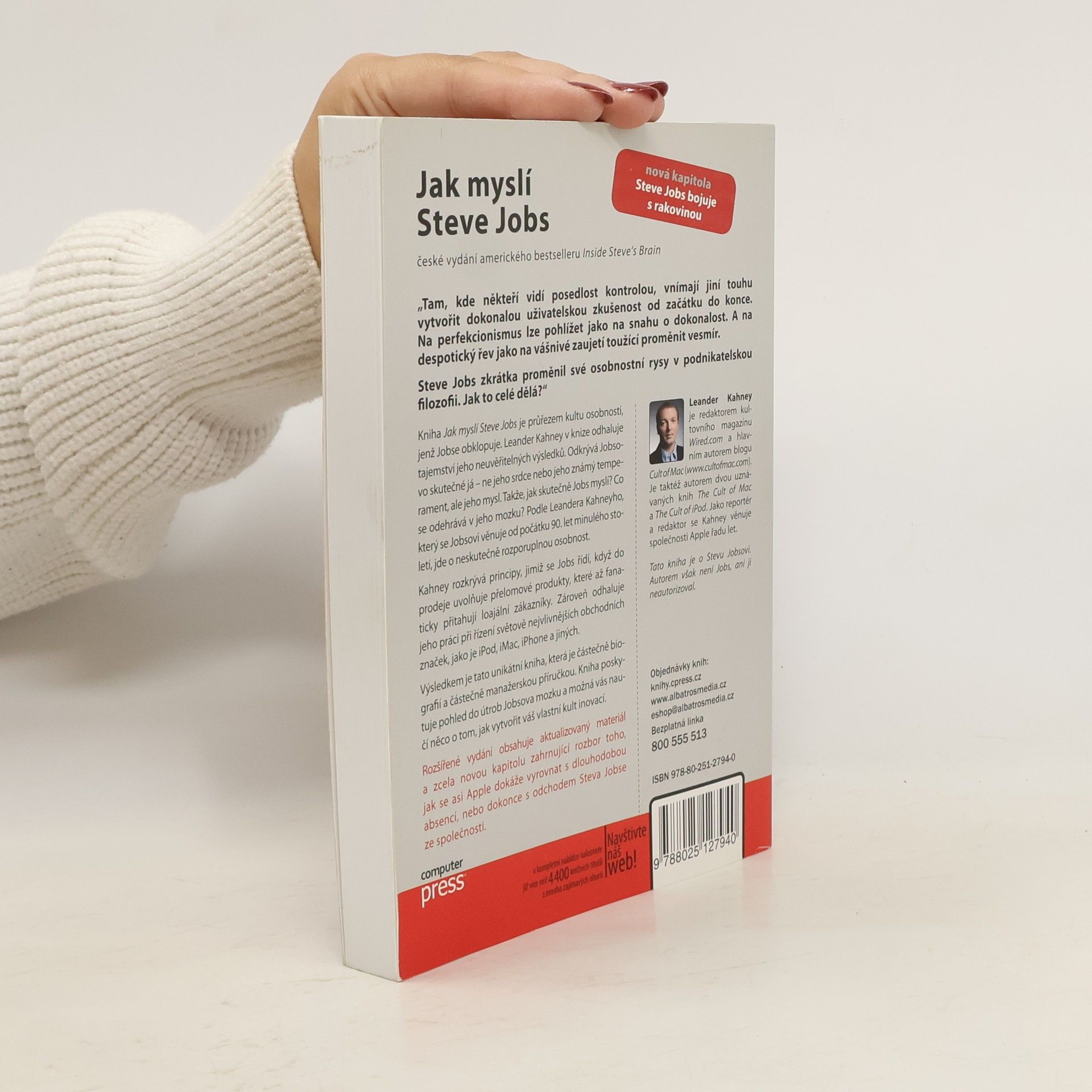 „Tam, kde někteří vidí posedlost kontrolou, vnímají jiní touhu vytvořit dokonalou uživatelskou zkušenost od začátku do konce. Na perfekcionismus lze pohlížet jako na snahu o dokonalost. A na despotický řev jako na vášnivé zaujetí toužící proměnit vesmír. Steve Jobs zkrátka proměnil své osobnostní rysy v podnikatelskou filozofii. Jak to celé dělá?“ Kniha Jak myslí Steve Jobs je průřezem kultu osobnosti, jenž Jobse obklopuje. Leander Kahney v knize odhaluje tajemství jeho neuvěřitelných výsledků.