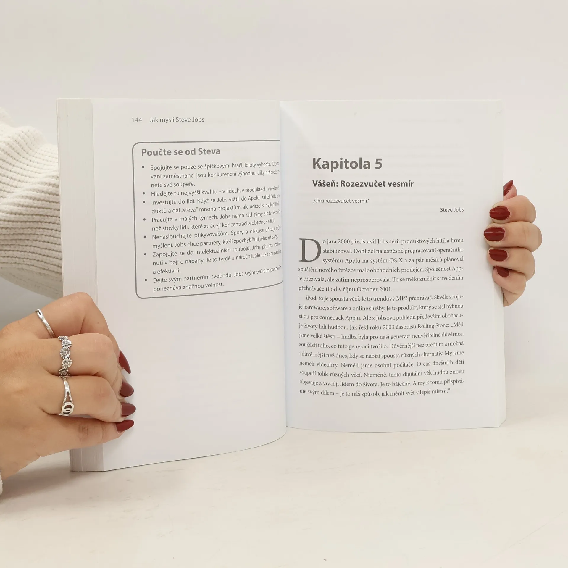 „Tam, kde někteří vidí posedlost kontrolou, vnímají jiní touhu vytvořit dokonalou uživatelskou zkušenost od začátku do konce. Na perfekcionismus lze pohlížet jako na snahu o dokonalost. A na despotický řev jako na vášnivé zaujetí toužící proměnit vesmír. Steve Jobs zkrátka proměnil své osobnostní rysy v podnikatelskou filozofii. Jak to celé dělá?“ Kniha Jak myslí Steve Jobs je průřezem kultu osobnosti, jenž Jobse obklopuje. Leander Kahney v knize odhaluje tajemství jeho neuvěřitelných výsledků.
