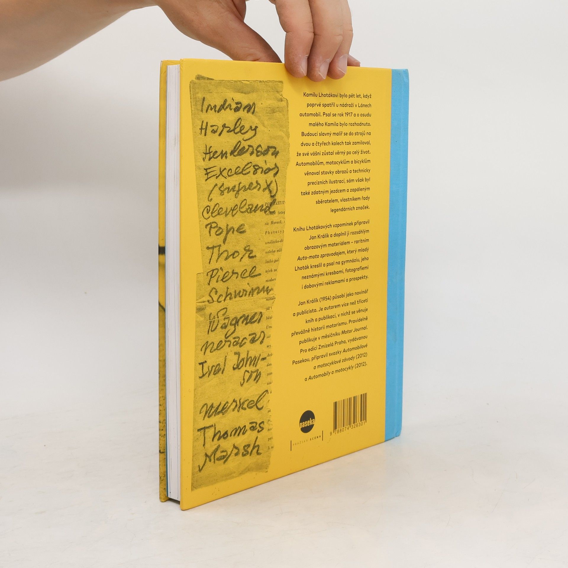 Motorové opojení Kamila Lhotáka. Kamilu Lhotákovi bylo pět let, když poprvé spatřil u nádraží v Lánech automobil. Psal se rok 1917 a o osudu malého Kamila bylo rozhodnuto. Budoucí slavný malíř se do strojů na dvou a čtyřech kolech tak zamiloval, že své vášni zůstal věrný po celý život. Automobilům, motocyklům a bicyklům věnoval stovky obrazů a technicky precizních ilustrací, sám však byl také zdatným jezdcem a zapáleným sběratelem, vlastníkem řady legendárních značek. Knihu Lhotákových vzpomínek připravil Jan Králík a doplnil ji rozsáhlým obrazovým materiálem - neznámými kresbami, fotografiemi, dobovými reklamami, inzeráty, ceníky a prospekty.