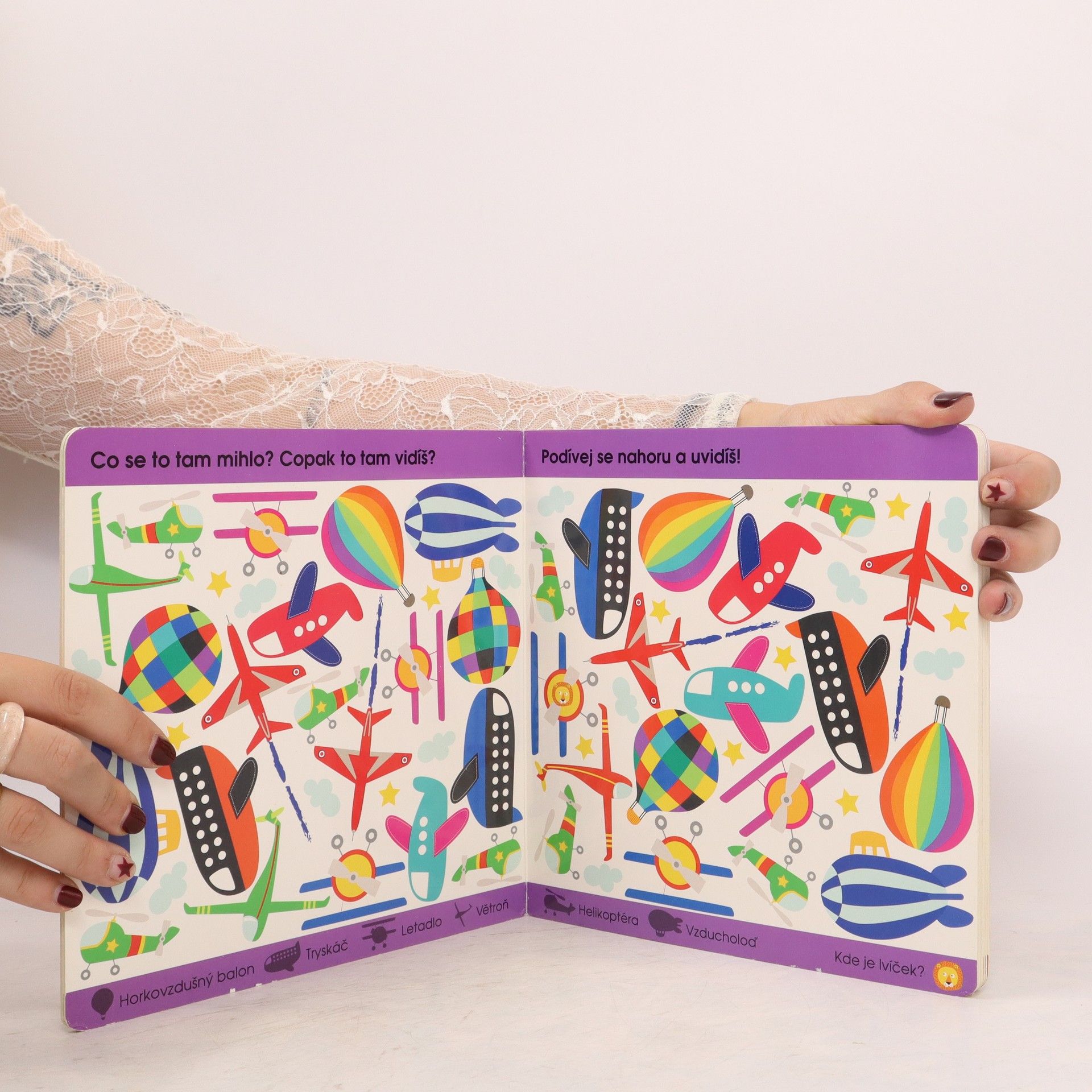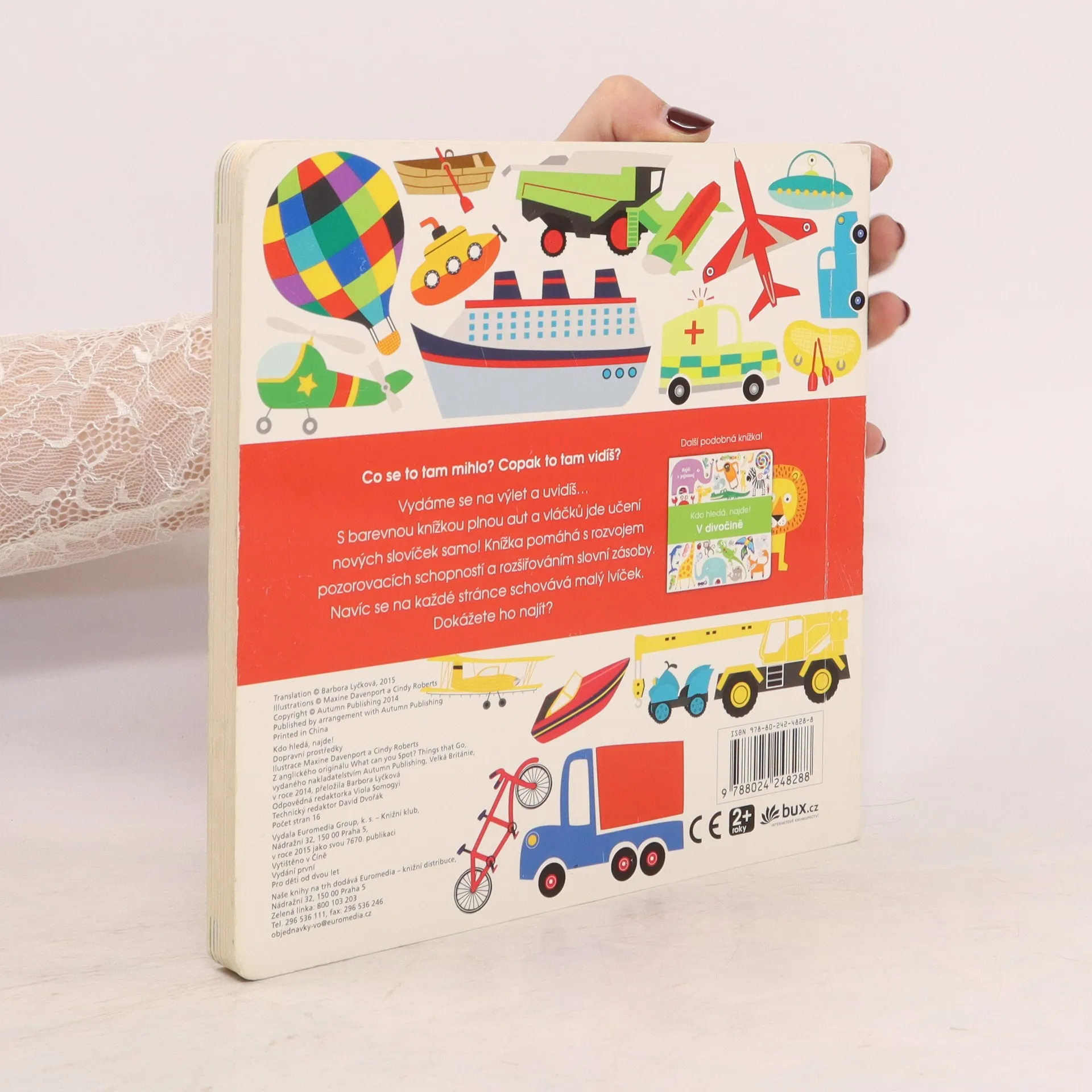 S barevnou knížkou plnou aut a vláčků jde učení nových slovíček samo! Knížka pomáhá rozvíjet postřeh a obohacuje slovní zásobu. Je plná všelijakých dopravních prostředků a strojů, které najdeme na souši, ve vodě i ve vzduchu. A na každé stránce se schovává maličký lvíček, kterého je potřeba objevit. Krásně ilustrované leporelo pro nejmenší čtenáře.