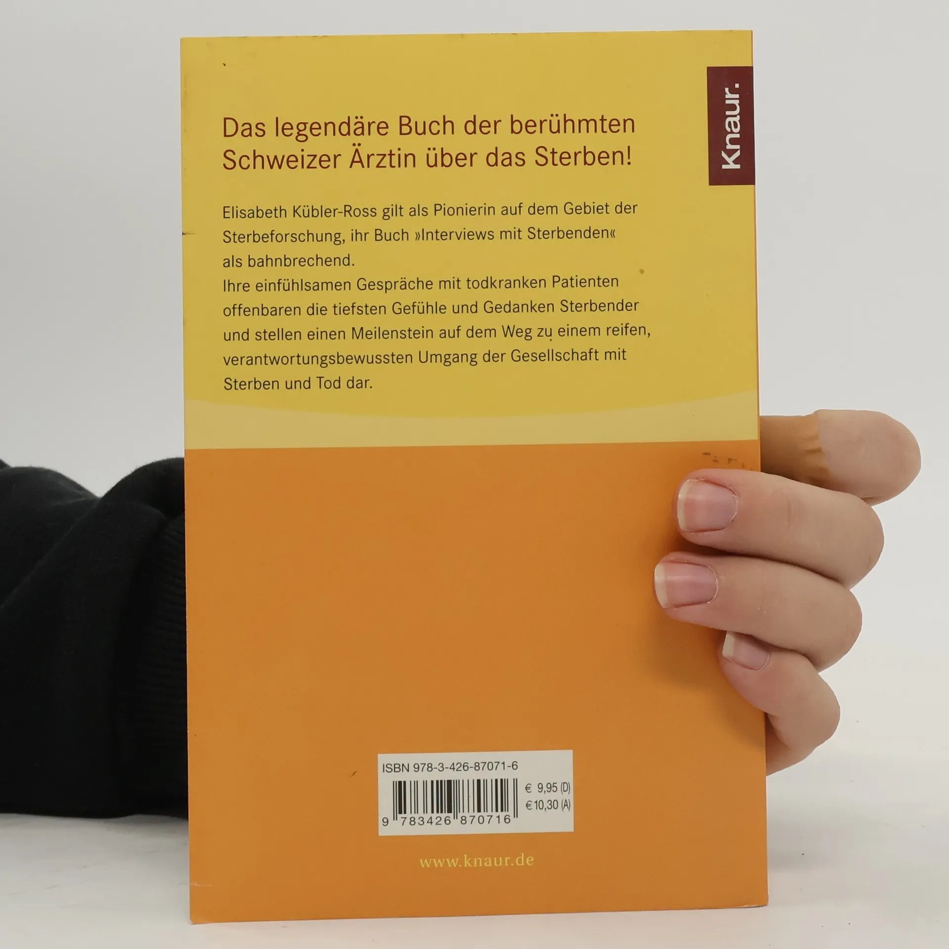 Elisabeth Kübler-Ross gilt als Pionierin auf dem Gebiet der Sterbeforschung, ihr Buch Interviews mit Sterbenden als bahnbrechend. Ihre einfühlsamen Gespräche mit todkranken Patienten offenbaren die tiefsten Gefühle und Gedanken Sterbender und stellen einen Meilenstein auf dem Weg zu einem reifen, verantwortungsbewußten Umgang der Gesellschaft mit Sterben und Tod dar. Die psychologischen Erkenntnisse, die aus diesen aufrichtigen, zum Teil erschütternden Gesprächen resultieren, helfen der Wissenschaft, aber auch Angehörigen, die Verhaltens- und Gefühlsmuster todkranker Menschen besser verstehen - ihre Hoffnung, ihre anklagen, ihre Angst, ihren Zorn - das macht das Buch so wertvoll.