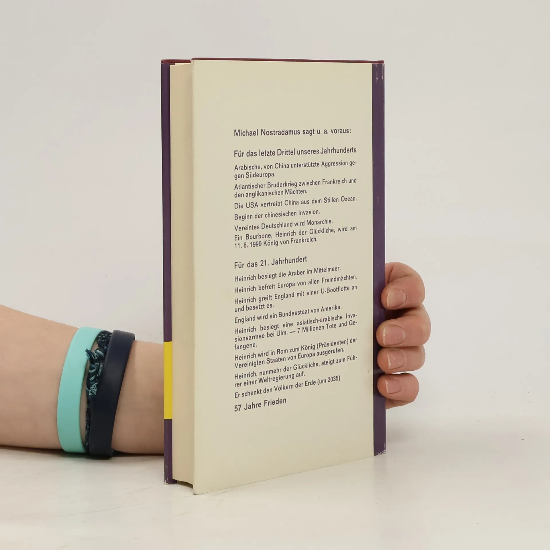 Nostradamus „prophetische Weltgeschichte“ reicht von 1552 bis 3797 n. Chr. Viele bisher nicht geklärte Centurien hat hier ein hervorragender Nostradamus-Forscher, Historiker und Philologe entziffert und den kommenden Jahrzehnten zahlreiche Prognosen weltpolitischen Geschehens gewidmet.