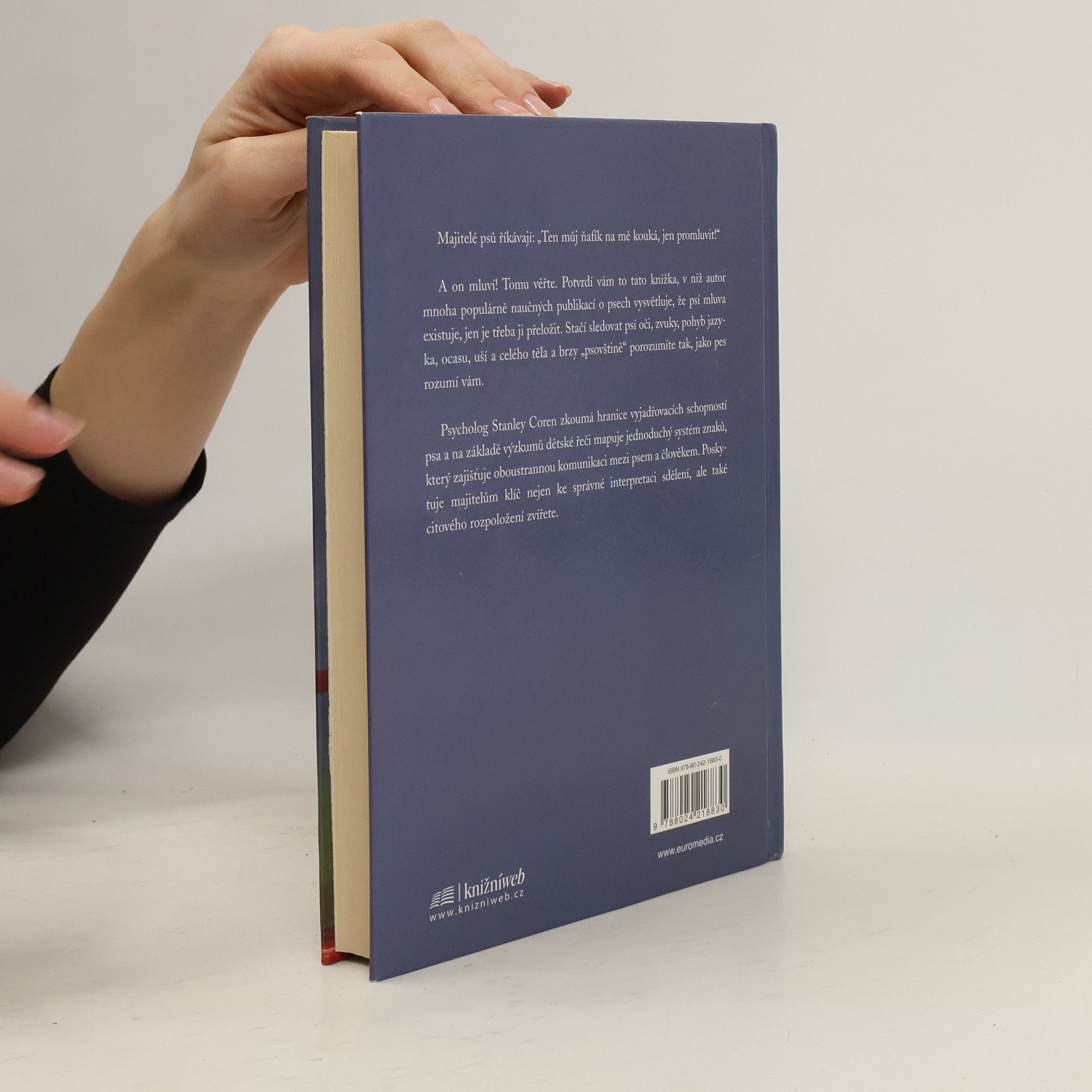 Majitelé psů říkávají: "Ten můj hafan na mě kouká, jen promluvit!" A on mluví! Tomu věřte. Potvrdí vám to tato knížka, v níž autor mnoha populárně naučných publikací o psech vysvětluje, že psí mluva existuje, jen je třeba ji přeložit. Stačí sledovat psí oči, zvuky, pohyb jazyka, ocasu, uší a celého těla a brzy "psovštině" porozumíte tak, jako pes rozumí vám. Psycholog Stanley Coren zkoumá hranice vyjadřovacích schopností psa a na základě výzkumů dětské řeči mapuje jednoduchý systém znaků, který zajišťuje oboustrannou komunikaci mezi psem a člověkem. Poskytuje majitelům klíč nejen ke správné interpretaci sdělení, ale také citového rozpoložení zvířete.