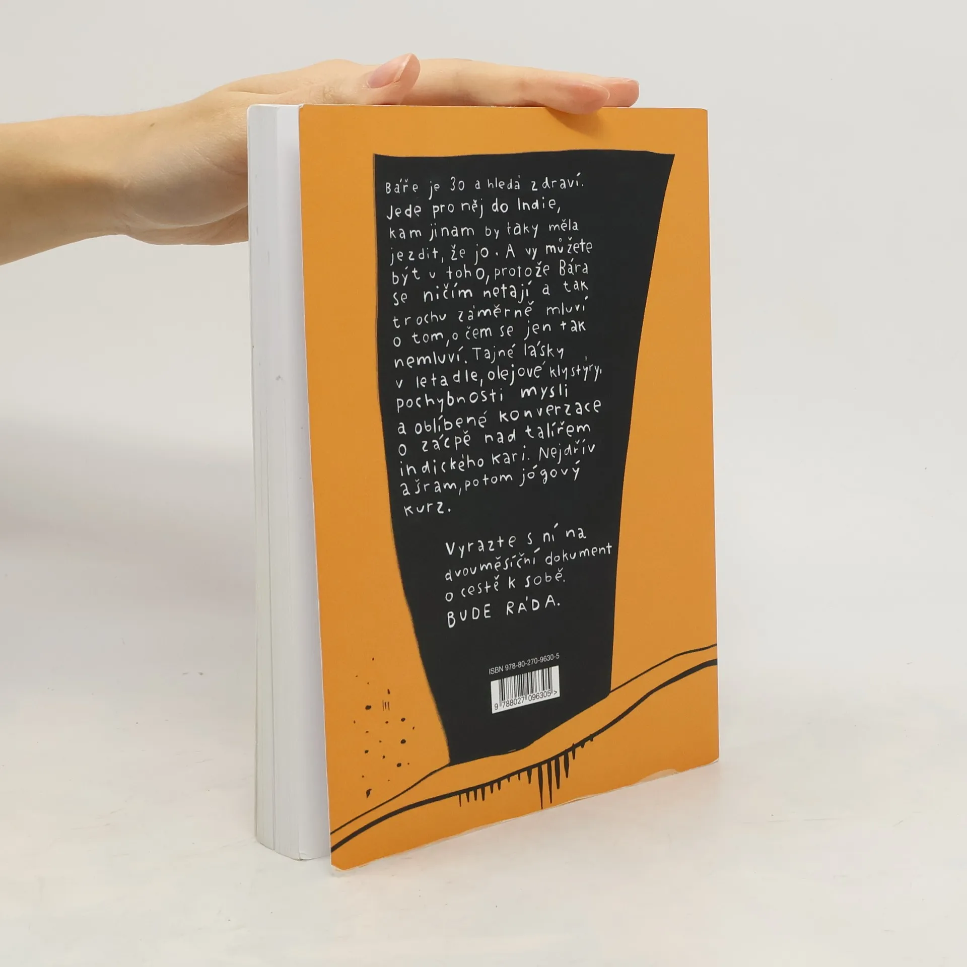 Báře je 30 a hledá zdraví. Jede pro něj do Indie, kam jinam by taky měla jezdit, že jo. A vy můžete být u toho, protože Bára se ničím netají a tak trochu záměrně mluví o tom, o čem se jen tak nemluví. Tajné lásky v letadle, olejové klystýry, pochybnosti mysli a oblíbené konverzace o zácpě nad talířem indického kari. Nejdřív ašram, potom jógový kurz. Vyrazte s ní na dvouměsíční dokument o cestě k sobě. Bude ráda.
