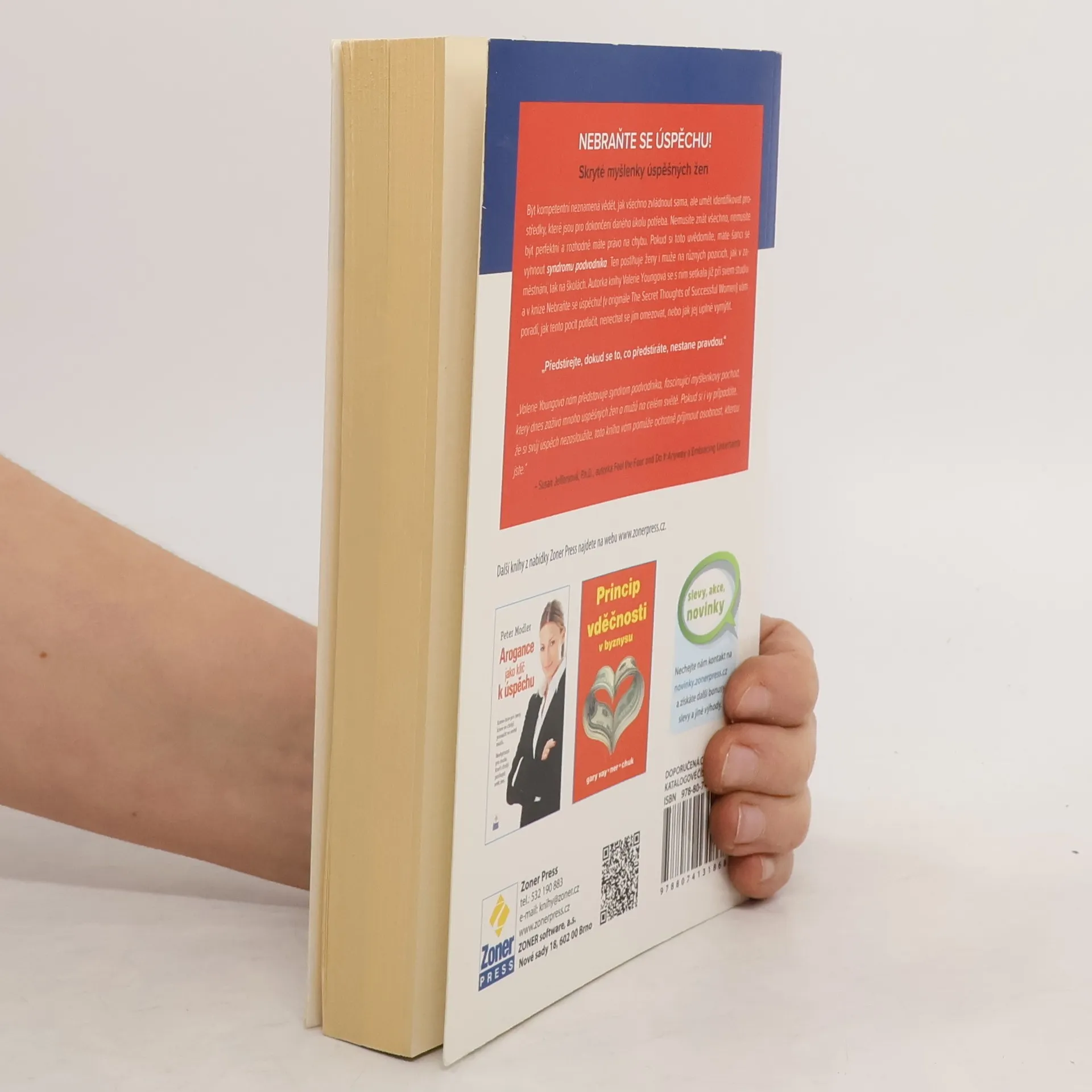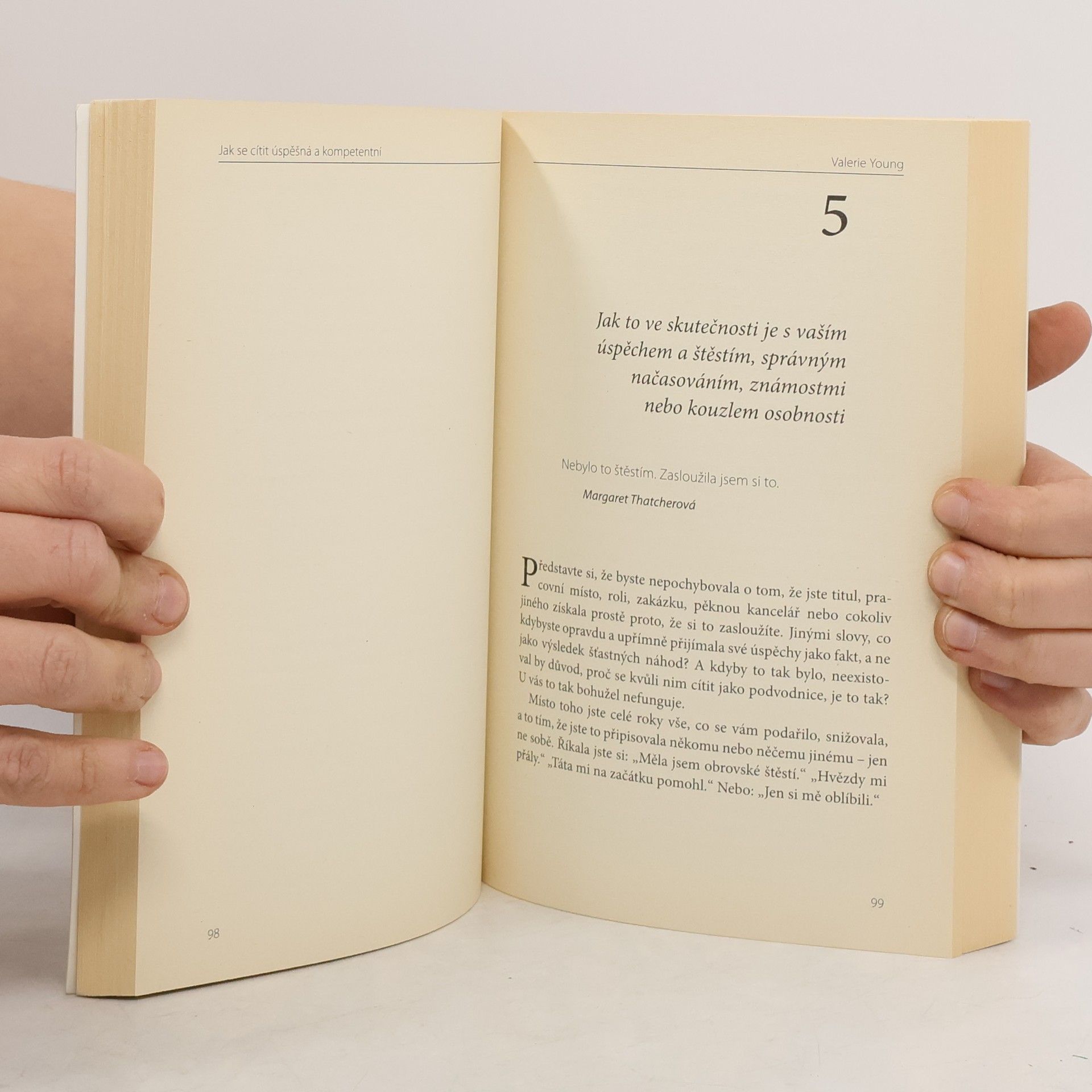 Proč se vám nedaří? Proč nikdy nic není perfektní? Proč se cítíte provinile při každé sebemenší chybě? Jednoduchá odpověď je – kvůli syndromu podvodníka. Jedná se o myšlenkový pochod, který dnes a denně prožívá mnoho žen a mužů po celém světě. Je to jedna z těch věcí, které vám brání získat povýšení, dokončit projekt, dostat lepší práci, dokončit školu – prostě být úspěšným člověkem. Doktorka Valerie Youngová vám ve své knize poradí jak v sobě syndrom podvodníka potlačit a úplně odstranit.