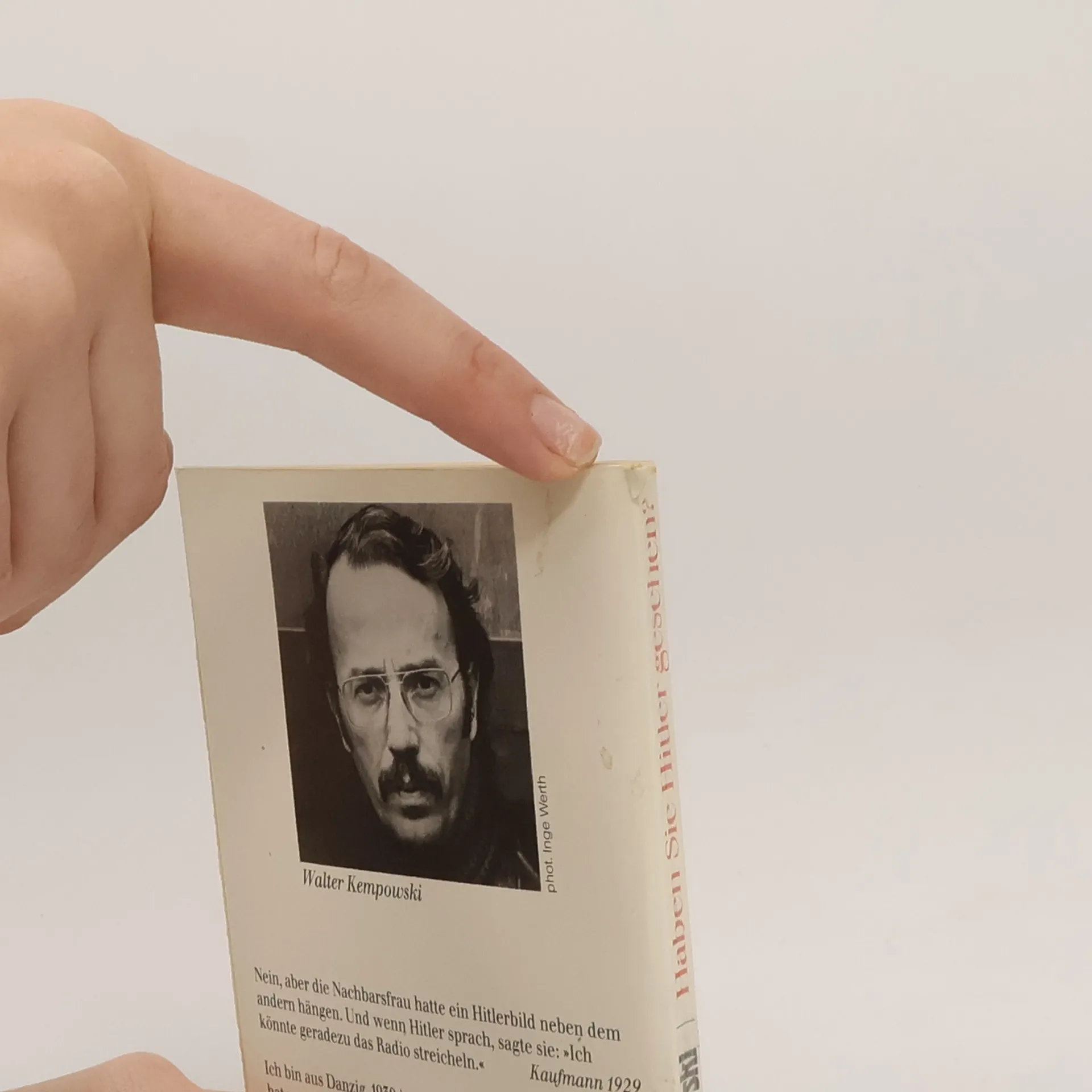 Zwei Bücher, die Geschichte machten Mit einem Vorwort von Joachim Gauck, Freund und Weggefährte Kempowskis Die „politischen Befragungsbücher“ Walter Kempowskis gehören zum Grundbestand der Auseinandersetzung der Deutschen mit dem Nationalsozialismus. Jetzt werden sie wieder aufgelegt. Ende der 1950er Jahre begann Walter Kempowski, seine Verwandten nach ihren Erinnerungen an Kindheit, Jugend und die Zeit des Dritten Reichs zu befragen. Sorgfältig notierte der angehende Schriftsteller alles in den „roten Bänden“, Grundstock für sein Romanprojekt der „Deutschen Chronik“, das ihn berühmt machte. Parallel dazu fing er an, Nachbarn, Bekannten und Passanten zwei Fragen zu stellen: „Haben Sie Hitler gesehen?“ und „Haben Sie davon gewusst?“ (nämlich von den KZs). Kempowski betrat mit dieser systematischen Befragung Neuland und brach damit im Wirtschaftswunderland Deutschland ein Tabu. Denn Vergessen und Verdrängen war das Gebot der Stunde. 1973 veröffentlichte Kempowski den Frageband um Hitler; er wurde (auch international) ein Bestseller. 1979 folgte der zweite Band. Die beiden Bücher haben ihren festen Platz im Kempowskischen Kosmos und waren wichtige Schritte hin zum „Echolot“, „einer der größten Leistungen der Literatur unseres Jahrhunderts“ (Frank Schirrmacher).