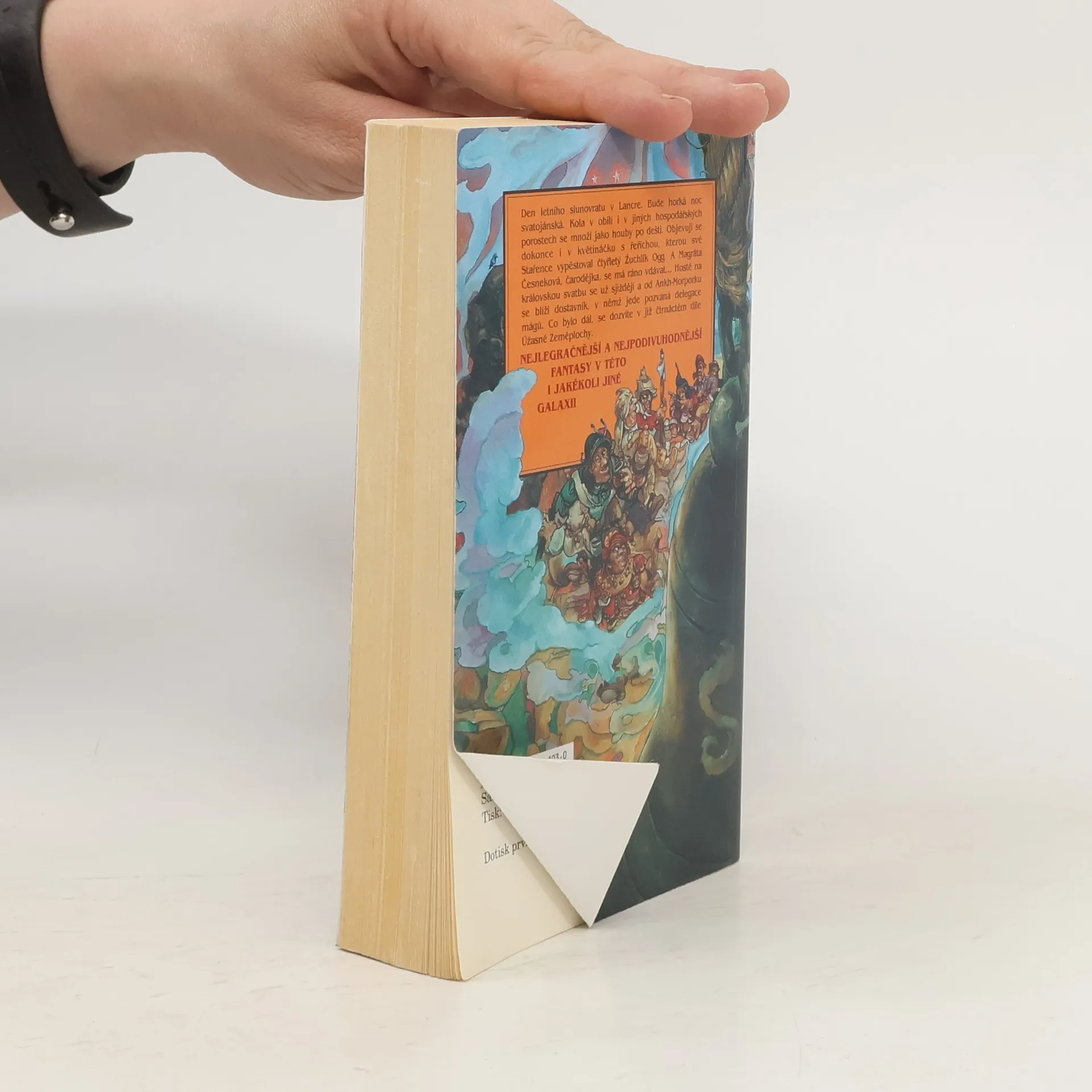 Den letního slunovratu v Lancre. Bude horká noc svatojánská. Kola v obilí i v jiných hospodářských porostech se množí jako houby po dešti. Objevují se dokonce i v květináčku s řeřichou, kterou své Stařence vypěstoval čtyřletý Žuchlík Ogg. A Magráta Česneková, čarodějka, se má ráno vdávat... Hosté na královskou svatbu se už sjíždějí a od Ankh-Morporku se blíží dostavník, v němž jede pozvaná delegace mágů. Úžasná Zeměplocha, kniha 14., přeložil Jan Kantůrek.