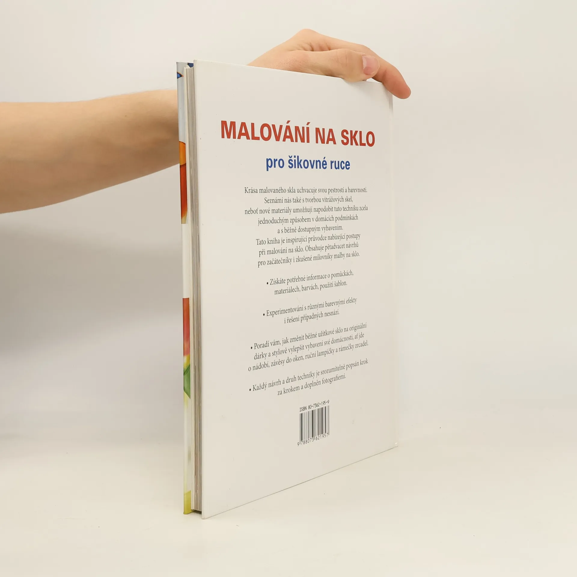 Malování na sklo je krásná zábava a nabízí potěšení z dosaženého výsledku. Autorka je přední britskou specialistkou v malování na sklo. Během profesní dráhy nasbírala nepřeberné množit í poznatků, jež navíc doplnila odpověďmi na nejčastější dotazy, s nimiž se setkává ve svých kurzech. Návody a rady v její knize jsou jednoduché a srozumitelné i pro naprosté začátečníky. Široká paleta nabízených motivů inspiruje k tvorbě vlastních návrhů.