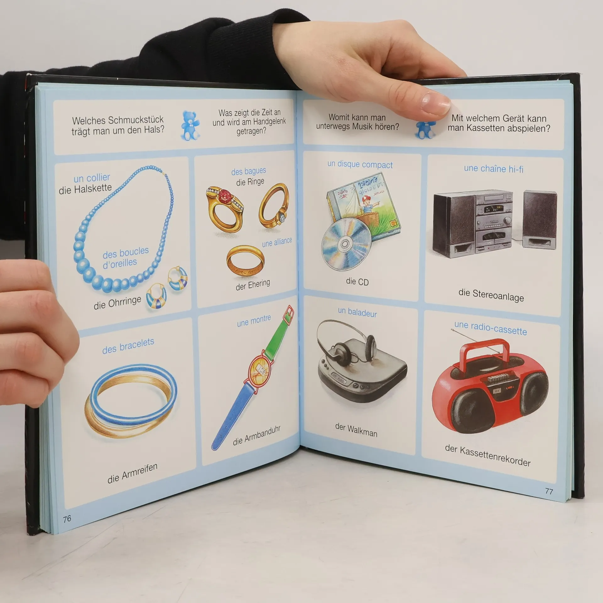 Dieser kleine Grundwortschatz mit Begriffen aus dem Alltag richtet sich an deutsche und französische Kinder und lädt sie dazu ein, die ersten Schritte in der jeweils anderen Sprache zu machen. Zusammenfassende Doppelseiten fordern die Kinder heraus, die neu erlernten Begriffe selbst wiederzufinden. Nach einem erfolgreich erprobten didaktischen Konzept.