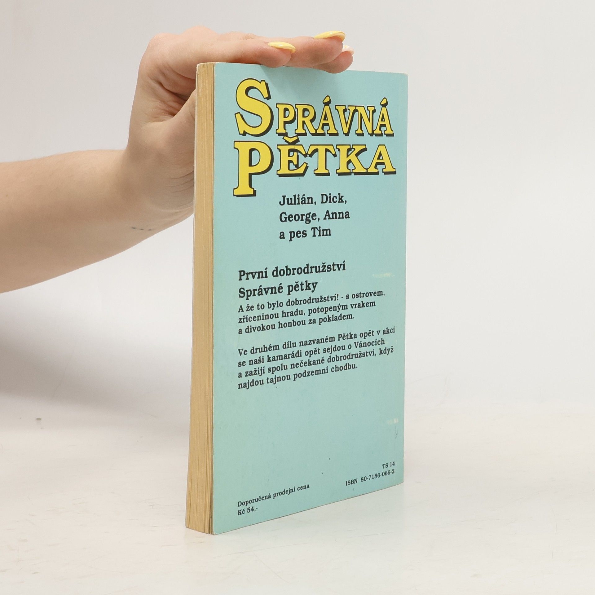 Správná pětka, to jsou ve skutečnosti čtyři a pes! Julián, Dick, George, Anna a pes Tim.Taky byste si přáli mít vlastní ostrov, který by byl jen a jen váš? A zažít takové dobrodružství jako Správná pětka? Plavili byste se po moři, přespávali v bouři ve zřícenině starého hradu a prozkoumali potopený vrak! A jak má takové správné dobrodružství skončit? Přece honbou za pokladem!