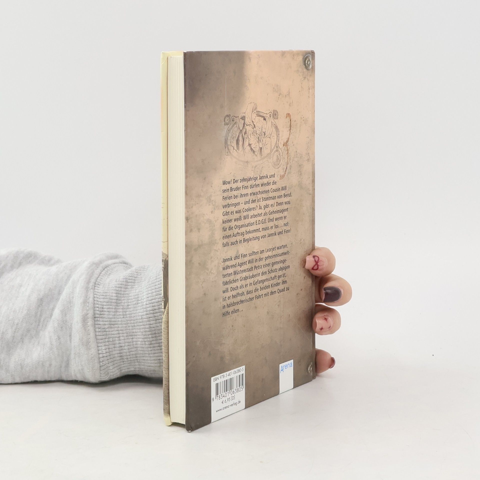 Der Aufenthalt der 9- und 10-jährigen Brüder Jannik und Finn bei ihrem erwachsenen Cousin Will verspricht spannend zu werden. Schliesslich ist Will Stuntman und seine Auftritte in Filmen sind atemberaubend. Doch dann stellt sich heraus, dass sein wahrer Beruf das Stuntman-Dasein bei weitem in den Schatten stellt: Will ist Geheimagent bei E.D.G.E., einer Organisation zur Erhaltung der Geheimen Erde. Die 1. Mission, auf der ihn die Brüder begleiten, führt in das Weltkulturerbe Petra nach Jordanien. Will soll dort den Grabräubern zuvorkommen und natürlich gibt es eine Chance für Jannik und Finn, zu zeigen, was in ihnen steckt. Auf gut 100 Seiten gelingt Thomas Fuchs ein spannendes Abenteuer, das mit grosser Schrift, vielen Illustrationen und zahlreichen Dialogen vor allem für ungeübte Leser gut geeignet ist. Die Reihe, die einiges aus Geschichte und Geografie einbaut, kann gern zur Fortsetzung empfohlen werden. Ab 8