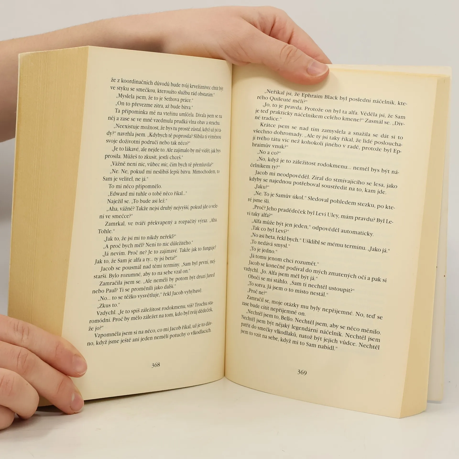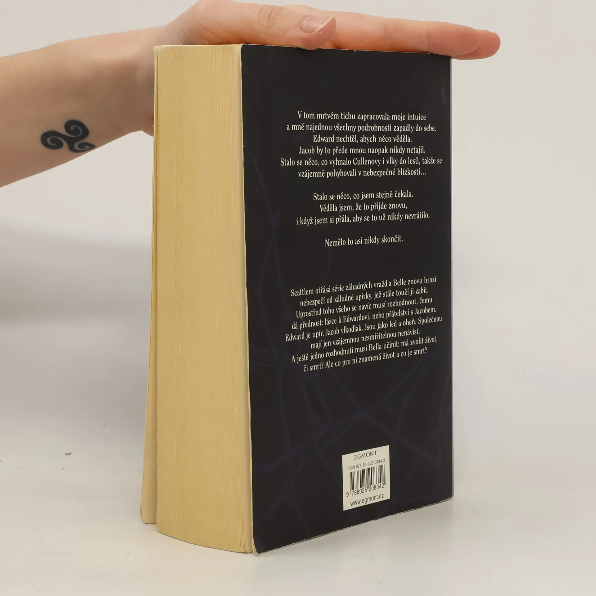 Docela dobrý díl. V polovině knihy jsem sice knihu musela odložit, jelikož přestávala být chuť na čtení, ale když se člověk do příběhu opravdu začte, tak by se to zvádlo přečíst klidně za tři dny s přehledem. To já bohužel neumím, musím mít na to chuť. A teď k příběhu. Edwarda mám ráda jako postavu, přijde mi kultivovaný, nesobecký a hodně zamilovaný do Belly. Jacob je pro mě nevychovaný, sobecký Vlk, který chce Bellu jen pro sebe. Ano jsem tým Edward a nebojím se to přiznat. Ale Bella se v téhle knize chová vážně na facku. Po celou dovu příběhu jen fňuká, nebo si stěžuje, že to má šíleně těžké a nemůže si vybrat mezi upírem a vlkodlakem, i když nejšťastnější je jenom s Edwardem. Její chování a rozhodování mě opravdu dostávalo k šílenství, ale možná to byl prostě jen autorčiný cíl.