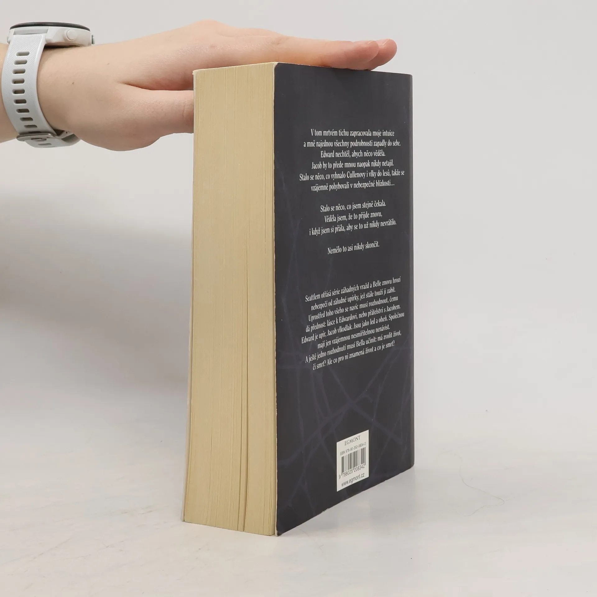 Docela dobrý díl. V polovině knihy jsem sice knihu musela odložit, jelikož přestávala být chuť na čtení, ale když se člověk do příběhu opravdu začte, tak by se to zvádlo přečíst klidně za tři dny s přehledem. To já bohužel neumím, musím mít na to chuť. A teď k příběhu. Edwarda mám ráda jako postavu, přijde mi kultivovaný, nesobecký a hodně zamilovaný do Belly. Jacob je pro mě nevychovaný, sobecký Vlk, který chce Bellu jen pro sebe. Ano jsem tým Edward a nebojím se to přiznat. Ale Bella se v téhle knize chová vážně na facku. Po celou dovu příběhu jen fňuká, nebo si stěžuje, že to má šíleně těžké a nemůže si vybrat mezi upírem a vlkodlakem, i když nejšťastnější je jenom s Edwardem. Její chování a rozhodování mě opravdu dostávalo k šílenství, ale možná to byl prostě jen autorčiný cíl.
