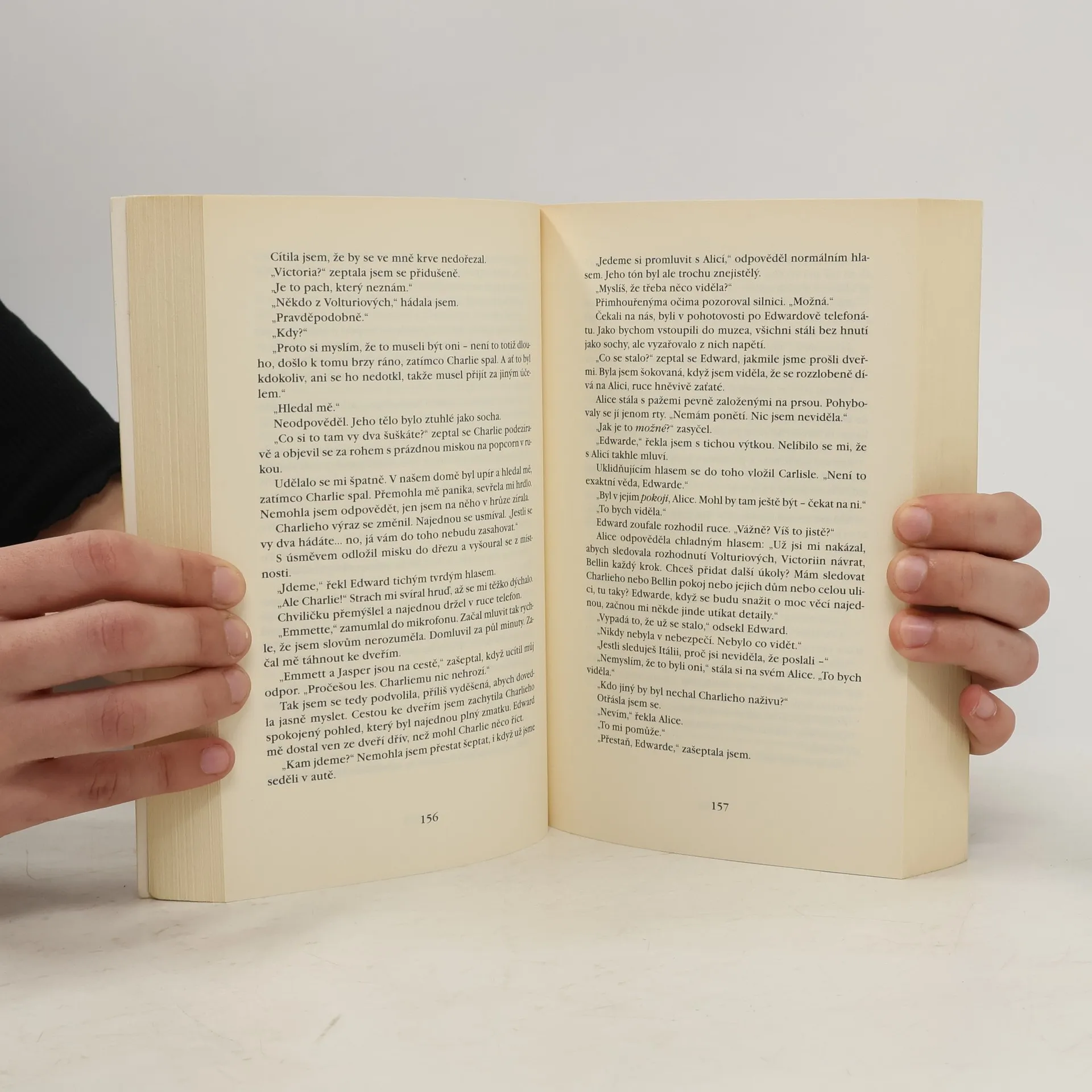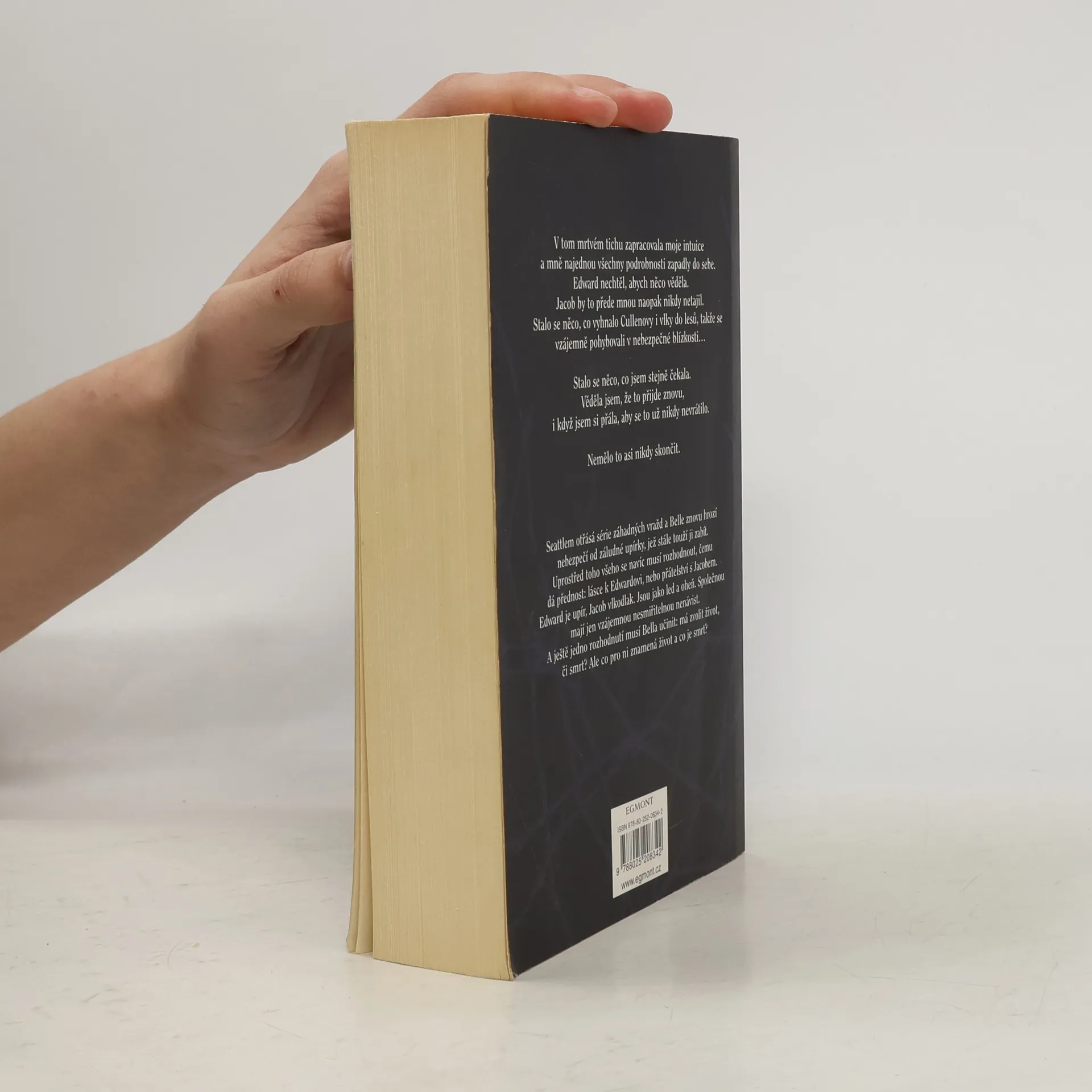 Docela dobrý díl. V polovině knihy jsem sice knihu musela odložit, jelikož přestávala být chuť na čtení, ale když se člověk do příběhu opravdu začte, tak by se to zvádlo přečíst klidně za tři dny s přehledem. To já bohužel neumím, musím mít na to chuť. A teď k příběhu. Edwarda mám ráda jako postavu, přijde mi kultivovaný, nesobecký a hodně zamilovaný do Belly. Jacob je pro mě nevychovaný, sobecký Vlk, který chce Bellu jen pro sebe. Ano jsem tým Edward a nebojím se to přiznat. Ale Bella se v téhle knize chová vážně na facku. Po celou dovu příběhu jen fňuká, nebo si stěžuje, že to má šíleně těžké a nemůže si vybrat mezi upírem a vlkodlakem, i když nejšťastnější je jenom s Edwardem. Její chování a rozhodování mě opravdu dostávalo k šílenství, ale možná to byl prostě jen autorčiný cíl.